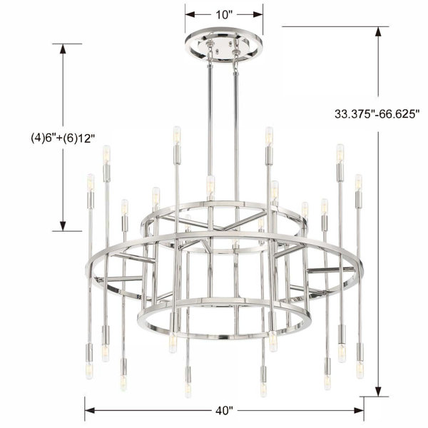 Right at home in any space and any lifestyle, the chandelier sophisticated shape will define a design scheme with its high polished chrome finish. This collection is anything but ordinary. The unique 10" oversized canopy accentuates the modern look of the collection.