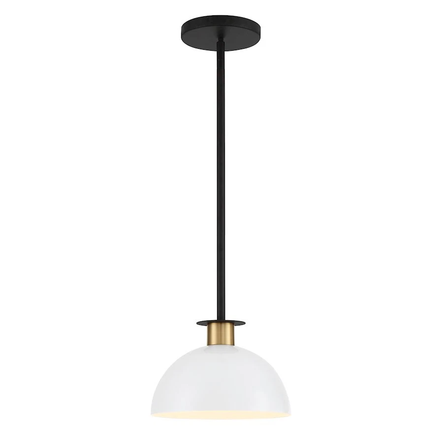 Crystorama Gigi 1 Light Pendant, Matte Black/Aged Brass/White - GIG-813-BK-AG