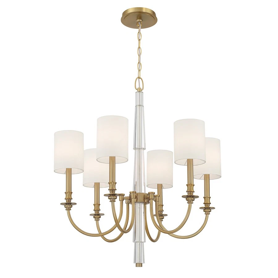Crystorama Lloyd 6 Light Chandelier, Aged Brass/White - LLO-486-AG