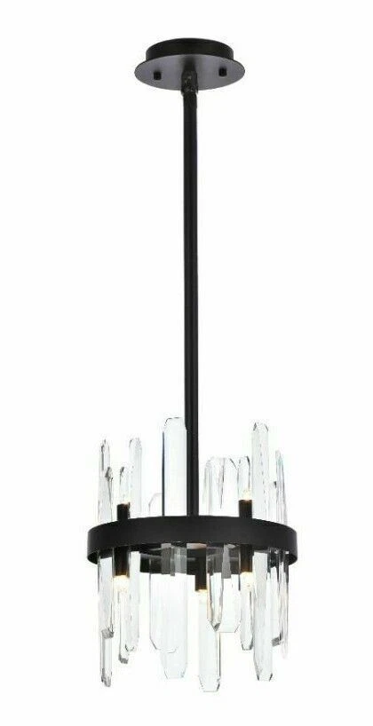 Black Pendant Crystal 6 Light Fixture Bathroom or Kitchen Island Chandelier 10in