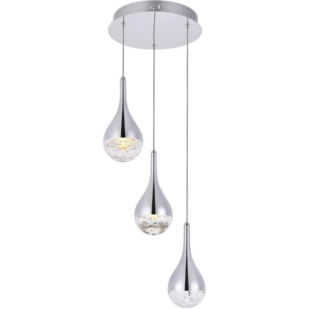 - Elegant Lighting Amherst 3 Light Clear LED Pendant in Chrome