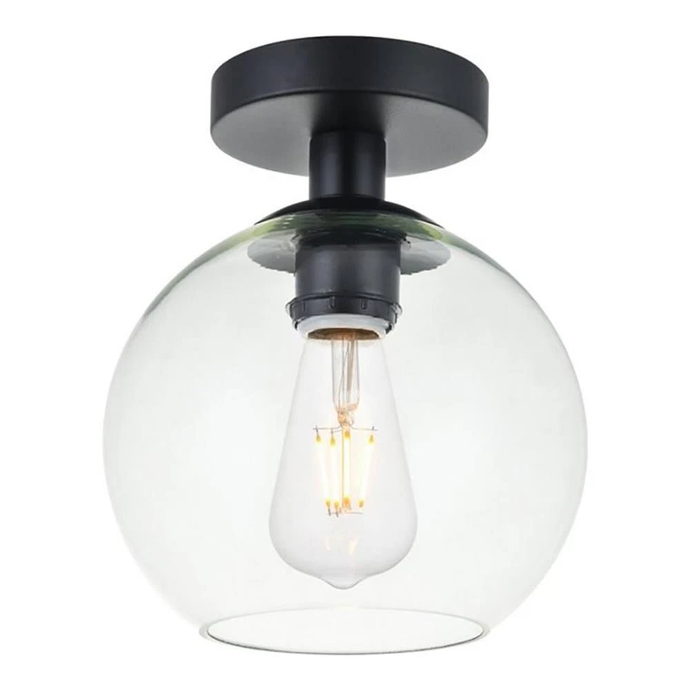 Living District Baxter 1-Light Metal & Glass Flush Mount in Black/Clear