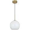 - Spherical frosted white glass shade with open center for easy bulb replacement
