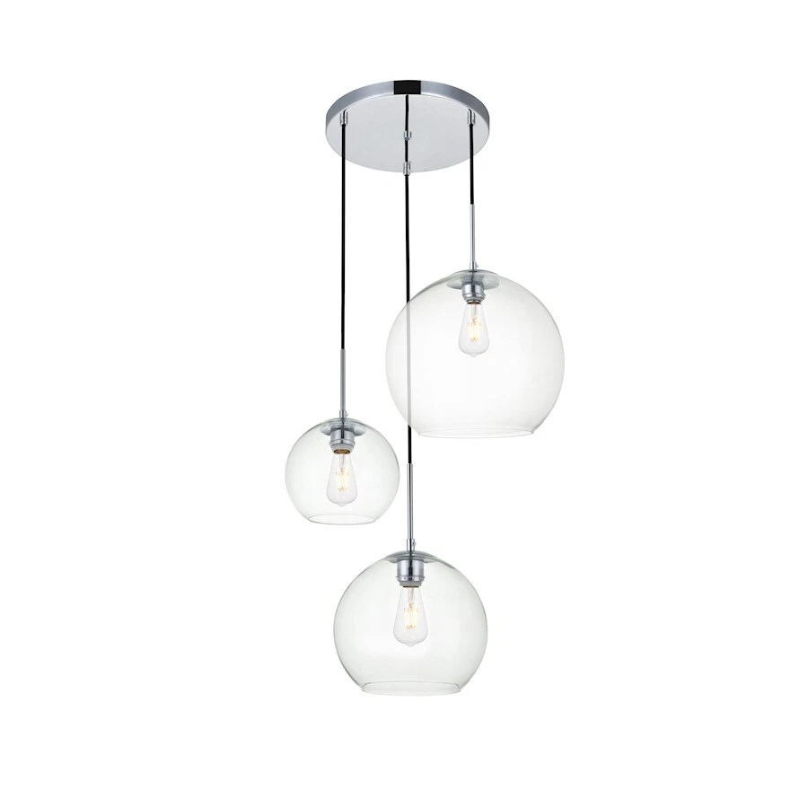 Living District Baxter 3 Light Pendant, Chrome/Clear, 20.9" - LD2218C