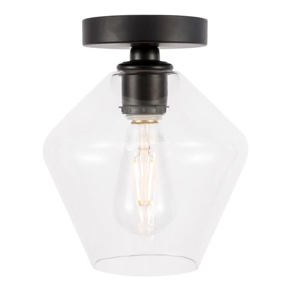 Living District Gene 1-Light Metal & Glass Flush Mount in Black/Clear