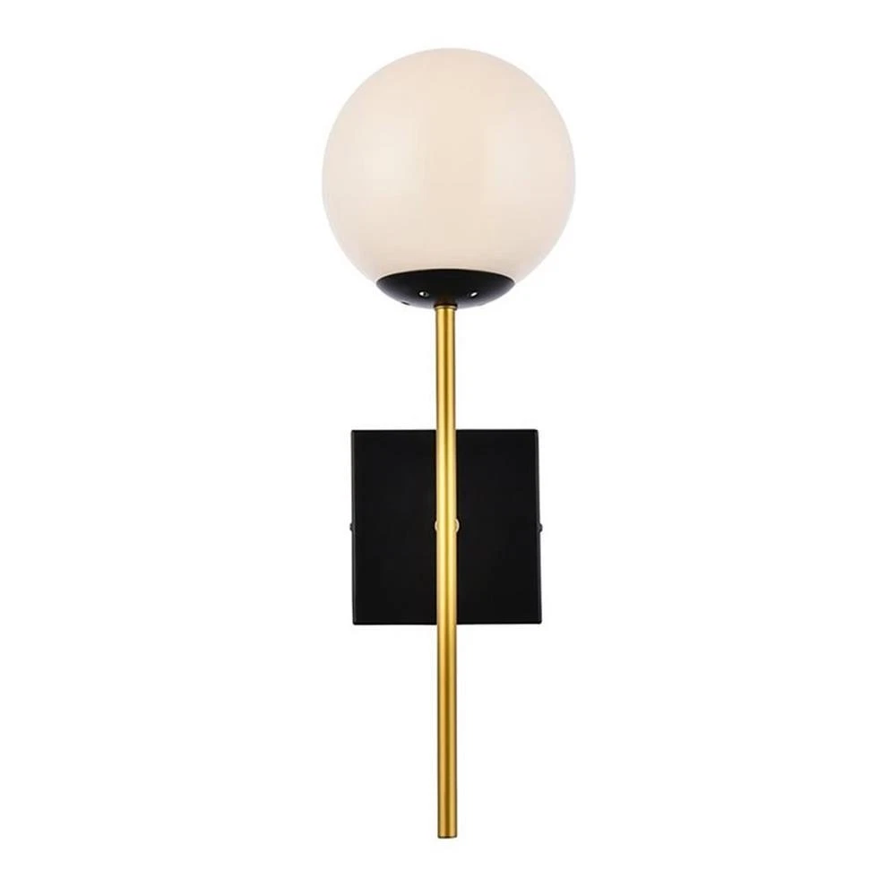 Living District Neri 1-Light Metal Wall Sconce w/ White Shade in Black and Brass