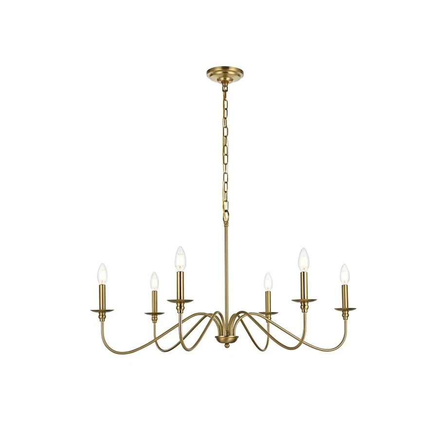 Living District Rohan 6 Light 36" Chandelier, Satin Gold - LD5006D36SG