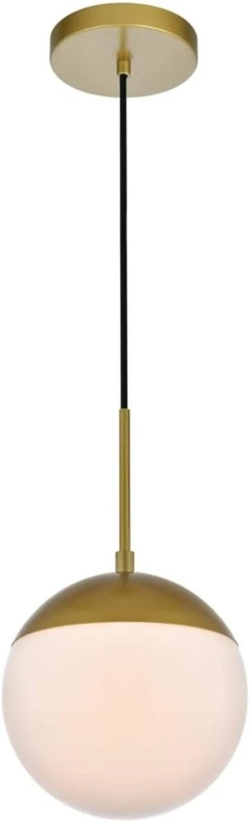 Living District Eclipse 1-Light Metal & Glass Pendant in Frosted White/Brass