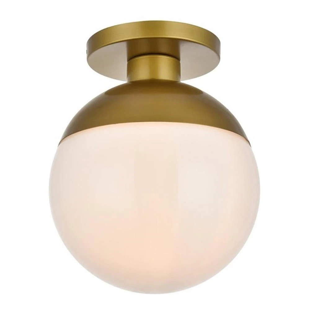 Living District Eclipse 1-Light Metal & Glass Flush Mount in Brass/Frosted White