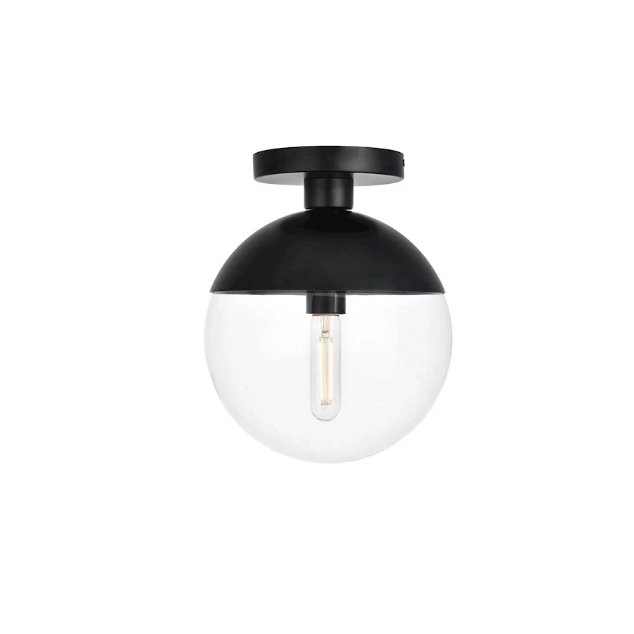 Living District Eclipse 1 Light Flush Mount, Black/Clear, 10" - LD6063BK