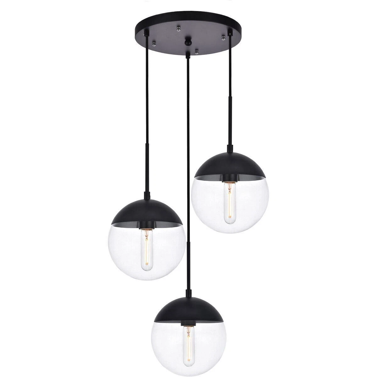 Black Pendant Light Fixture Mid Century Modern Glass Shades Dining Room Lighting