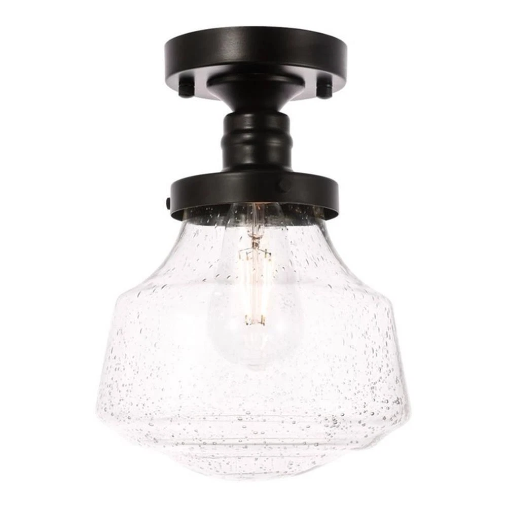 - Living District Lyle 1-Light Metal & Glass Flush Mount in Black/C