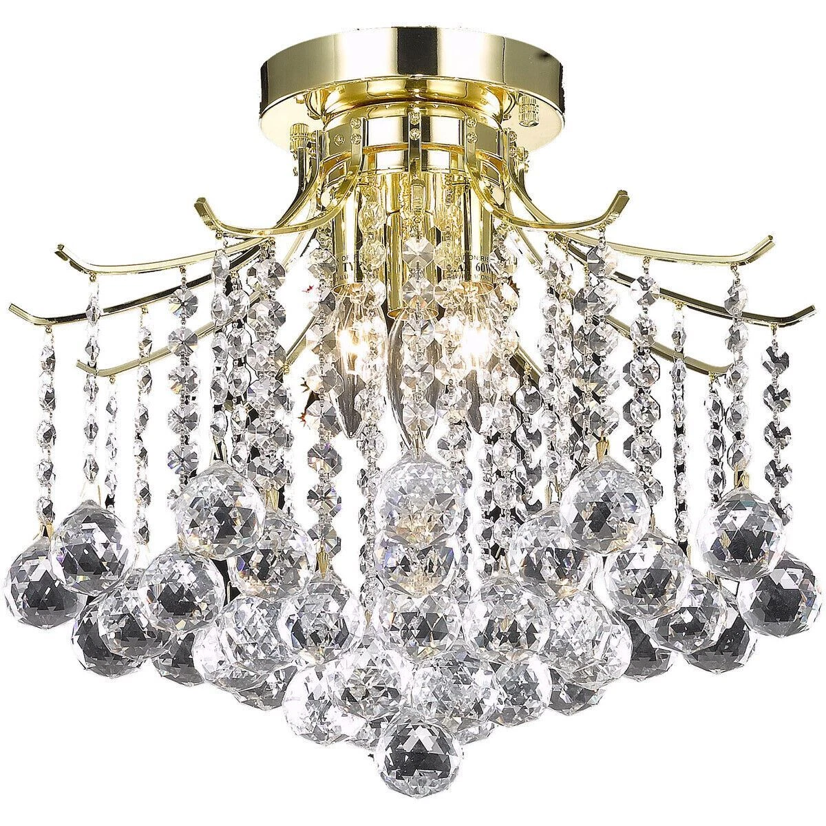 Crystal Balls Flush Mount Ceiling Light Gold Bathroom or Dining Room Lighting