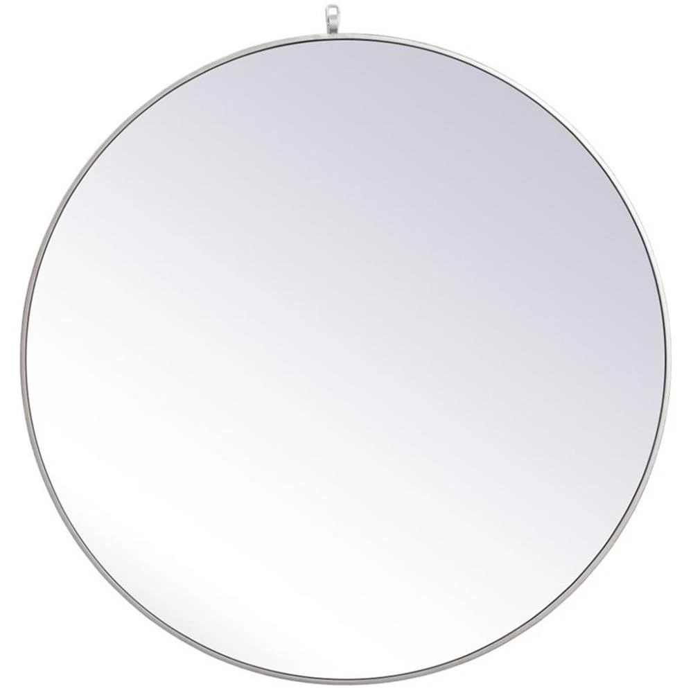 Elegant Decor Eternity 39" Round Mid Century Metal Frame Hooked Mirror in Silver