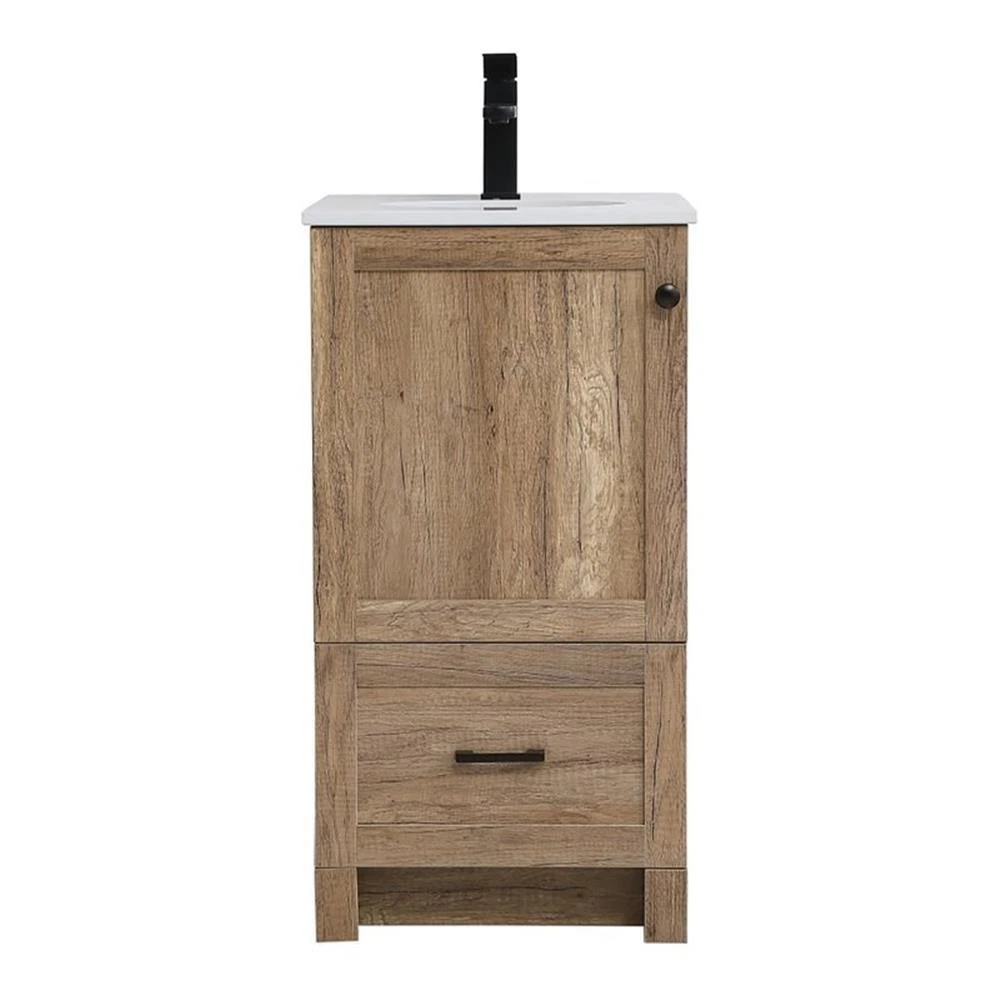 Elegant Decor Soma 18" Steel MDF Stone Single Bathroom Vanity in Natural Oak