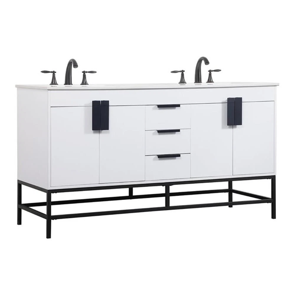 Elegant Decor Eugene 60" Aluminum and MDF Double Bathroom Vanity in White