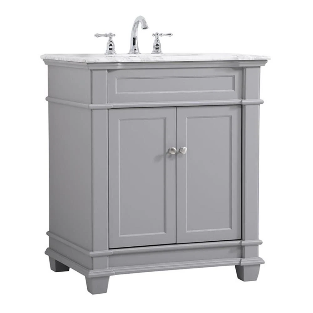 Elegant Decor Wesley 30" Steel and Solid Wood Single Bathroom Vanity Set in Gray