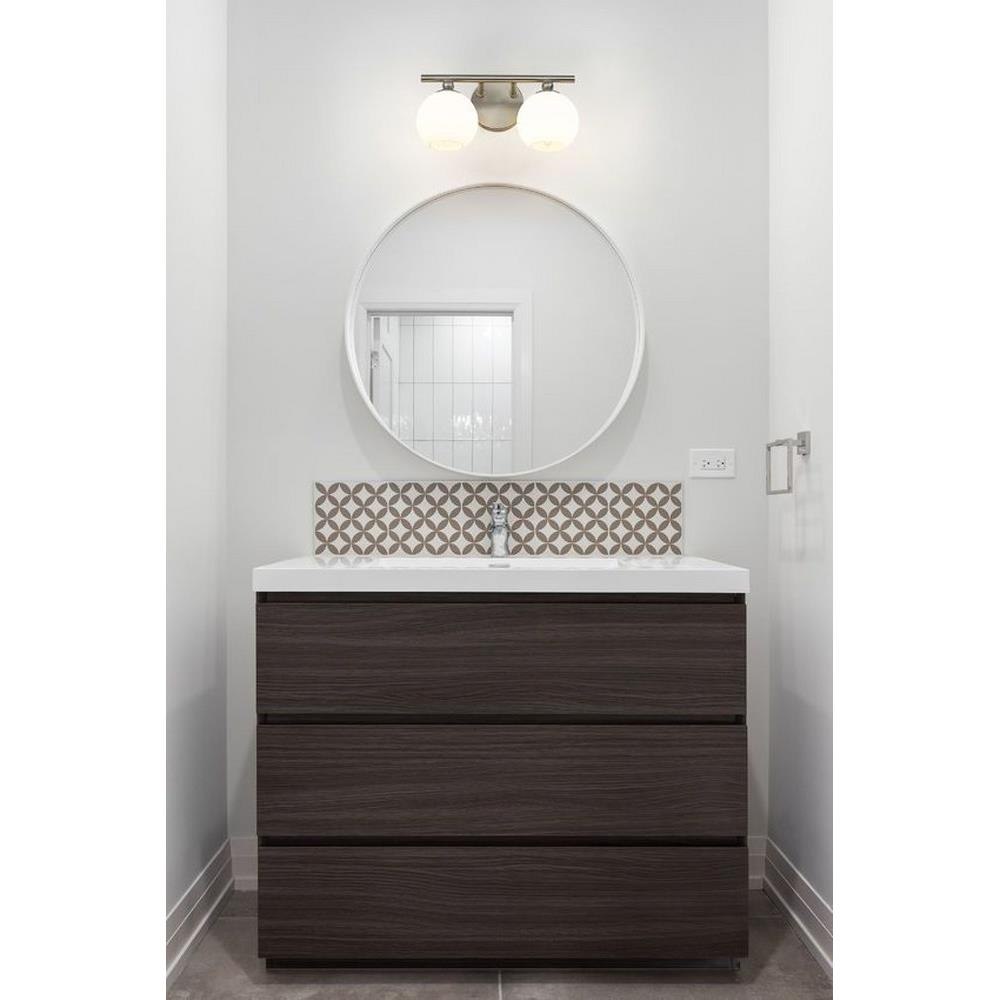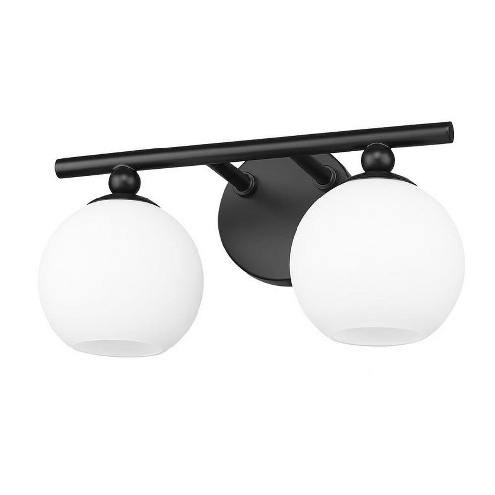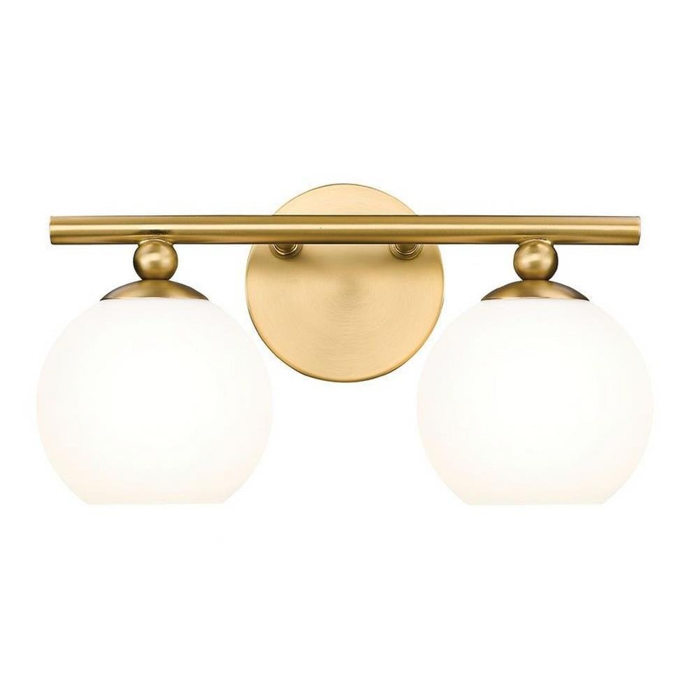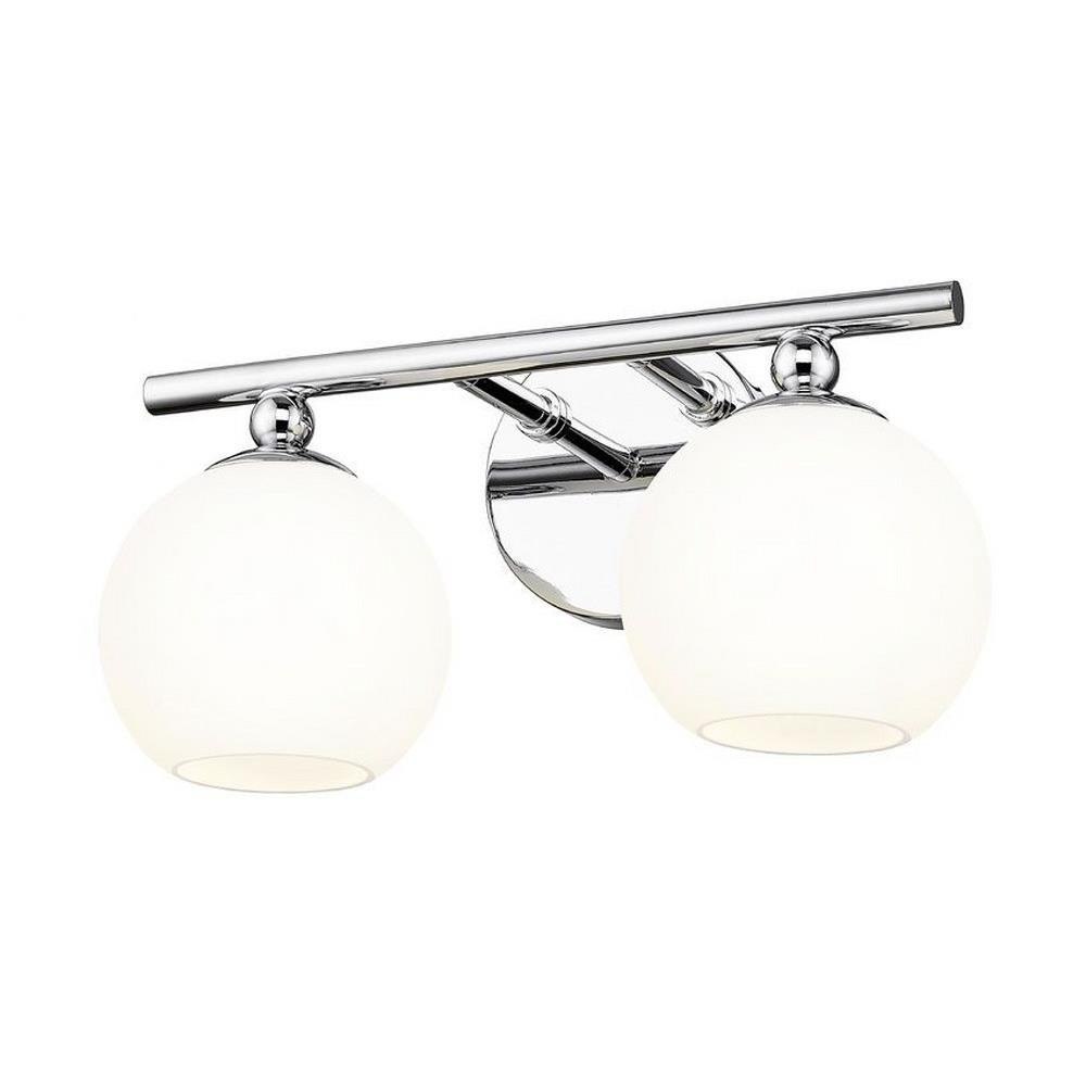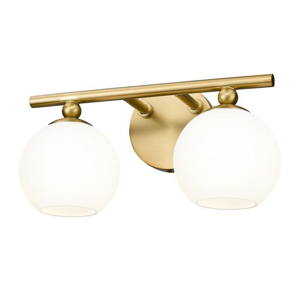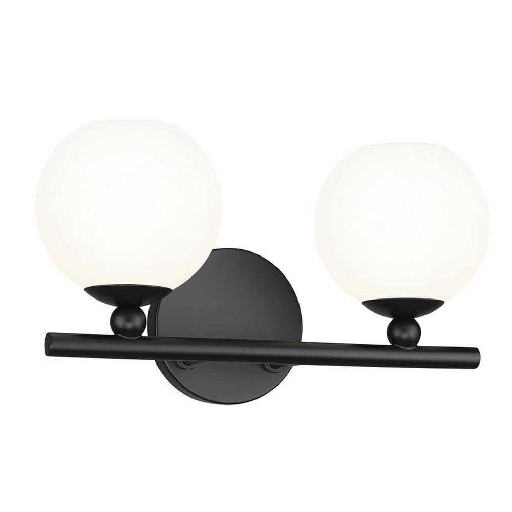 Make modern style work in an updated bath space with this two-light vanity light from the Neoma collection. Symmetry and a hint of festive retro influence blend to add an outspoken design aesthetic featuring side-by-side opal etched glass globe shades affixed to a minimalist frame made of brushed nickel finish steel. This contemporary vanity light transforms a master ensuite or guest bath into a haven for style.