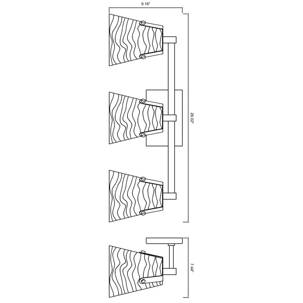 A generous width and upscale aesthetic go a long way toward highlighting an ensuite or guest bath vanity with a four-light vanity light from the lyna collection. This chic fixture reflects a touch of nautical charm and embodies the importance of symmetry and style. A linear frame fashioned of bold matte black finish steel supports four glam clear ribbed glass cone shades, delivering an uncompromising level of romantic essence.