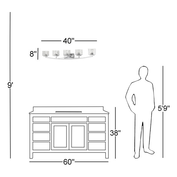 With its blend of straight lines and gentle curves, this Vandoren 5-light dimmable vanity light brings a modern accent to your bathroom. Made from steel, it has a contoured rectangular backplate and five cube-shaped shades. The shades are made from chiseled glass that adds a subtle layer of texture. This fixture mounts facing up or down, depending on your preference. It’s suitable for installation in damp locations, like the bathroom. Plus, we love that this fixture is compatible with a dimmer switch (sold separately), to let you choose the ambiance in your space. Five 100w bulbs are sold separately.