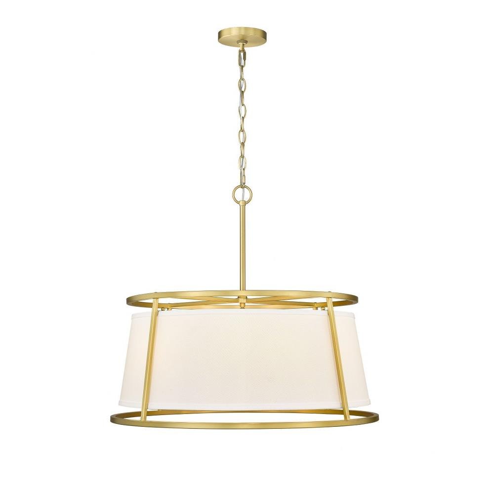 Light and elegant style blend to create a motif with impressive ambiance perfect for a modern living room, dining space, or entryway. Embrace the Lenyx six-light pendant and its rubbed brass finish openwork steel frame offering full view of a classic white linen shade that keeps to a more conventional look with familiarity.