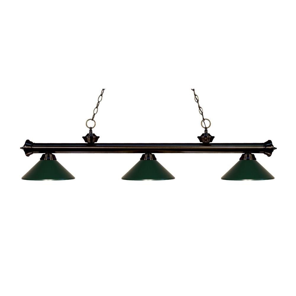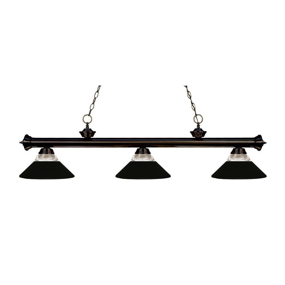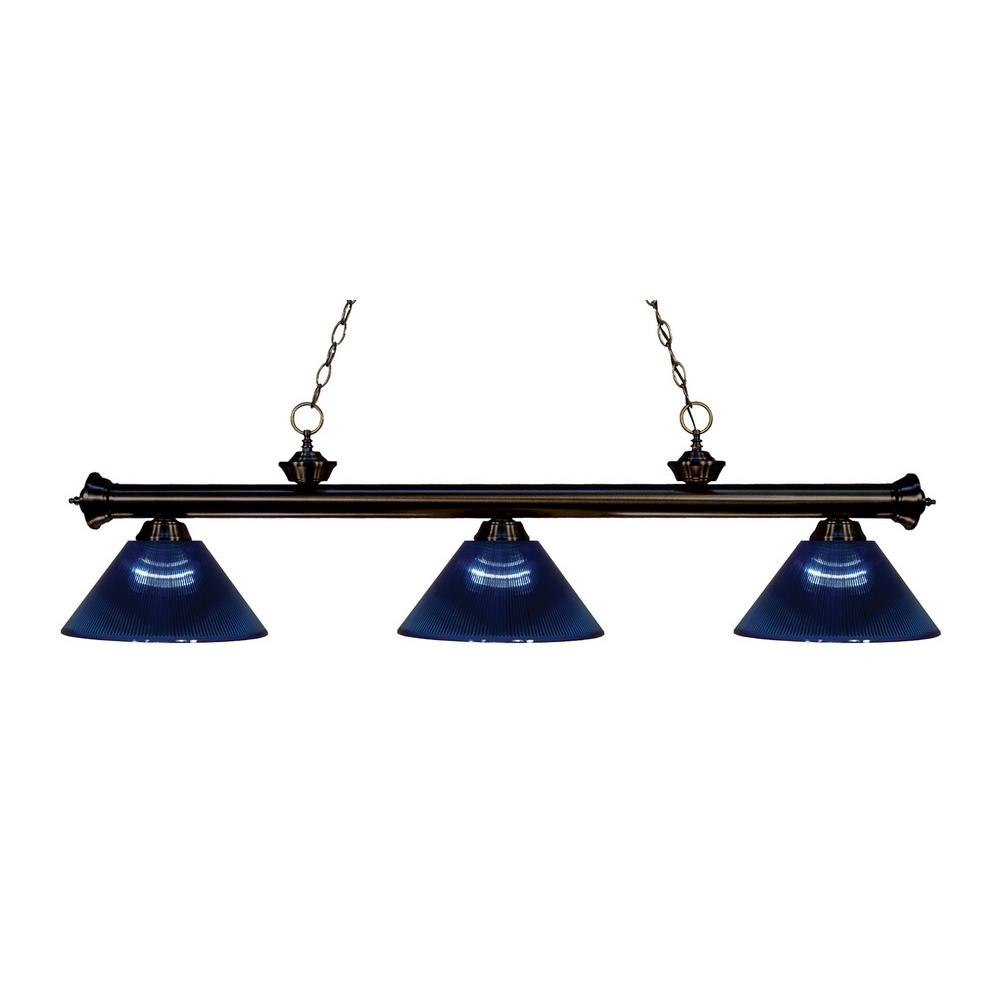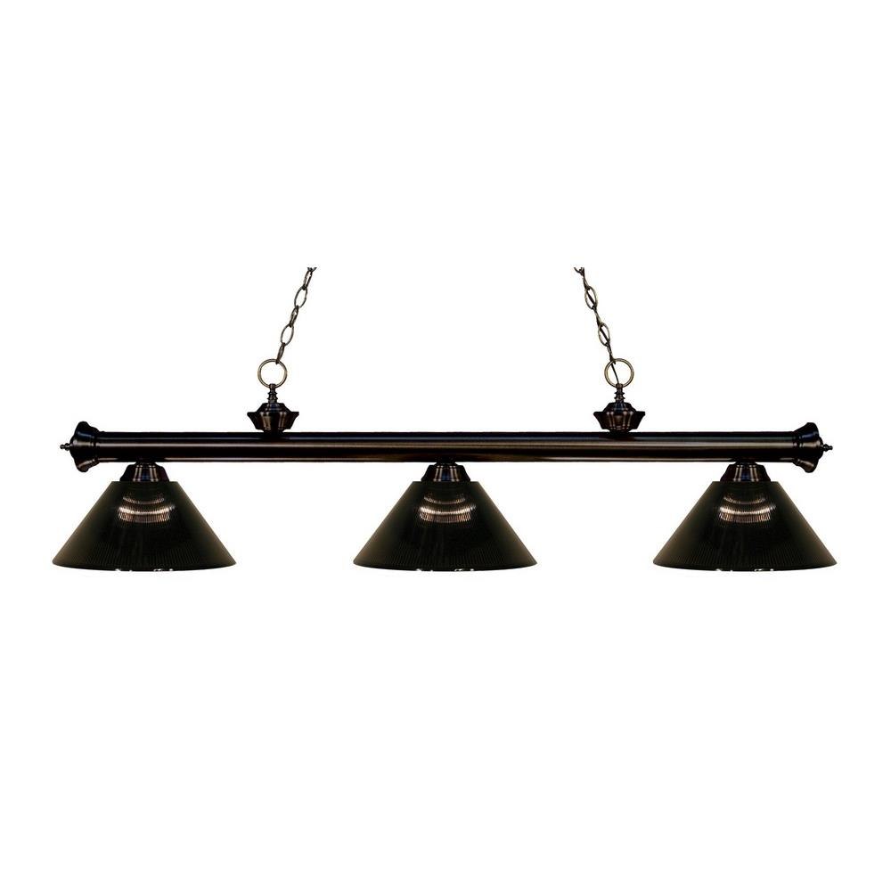 Elegant and traditional best describes this beautiful three light fixture. Finished in bronze and paired with fluted golden mottle glass shades, this three light fixture would be equally at home in the game room, or anywhere else in the house needing a touch of timeless charm.