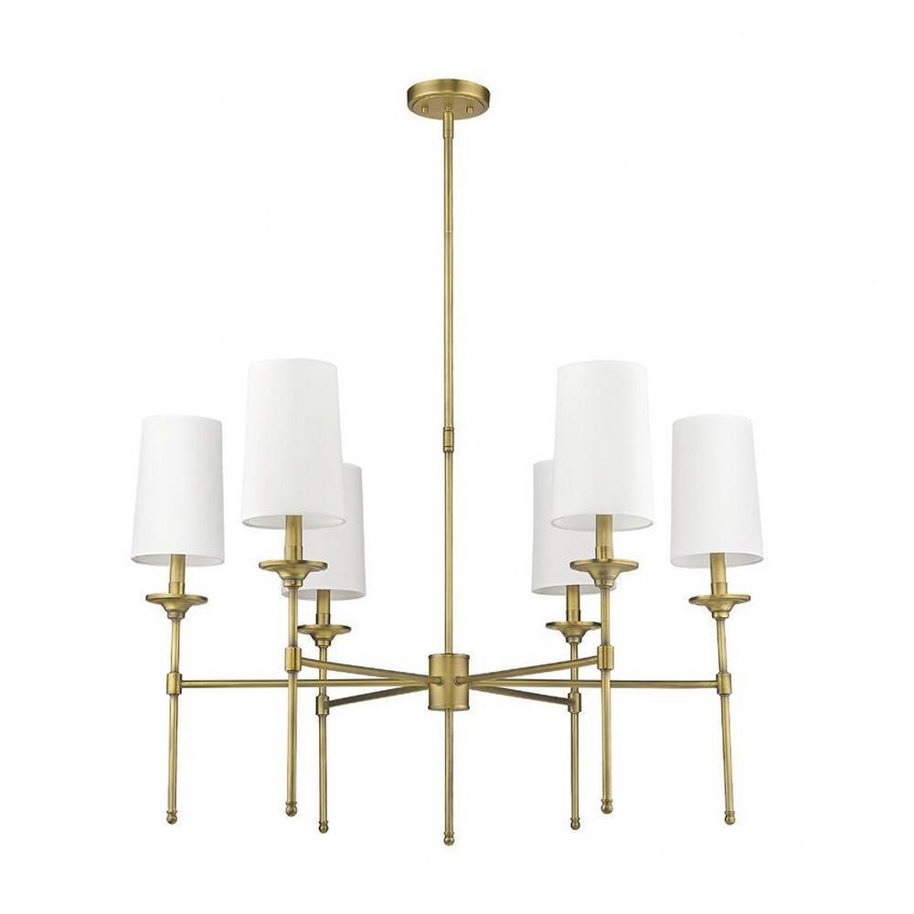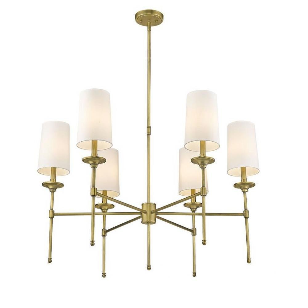 Inspired by our popular Emily Sconce, with its slender silhouette, the Emily Chandelier expands the elegant design statement in one- and two-tier versions available in five to nine lights to suit larger living spaces. The subtly sophisticated style takes on a different look depending on the finish selected: Polished Nickel, Brushed Nickel, Rubbed Brass, and Matte Black.