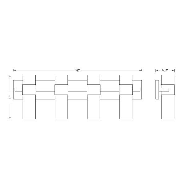 This 4-light vanity fixture brings a classic, on-trend look that gives your bathroom a hint of glam style. Crafted from steel with a sleek finish, it includes a rectangular backplate and four cuffs that clasp and hold in place clear cylinder glass shades. Nestled within each one is a single bulb, sold separately and dimmable to move you effortlessly from day to night. This vanity light is also damp-rated, making it safe to use in high-moisture environments.