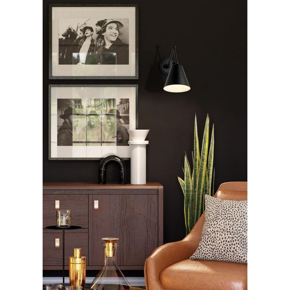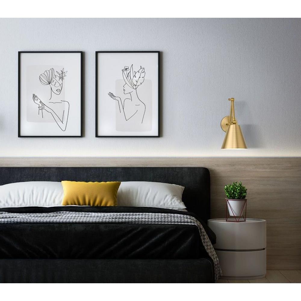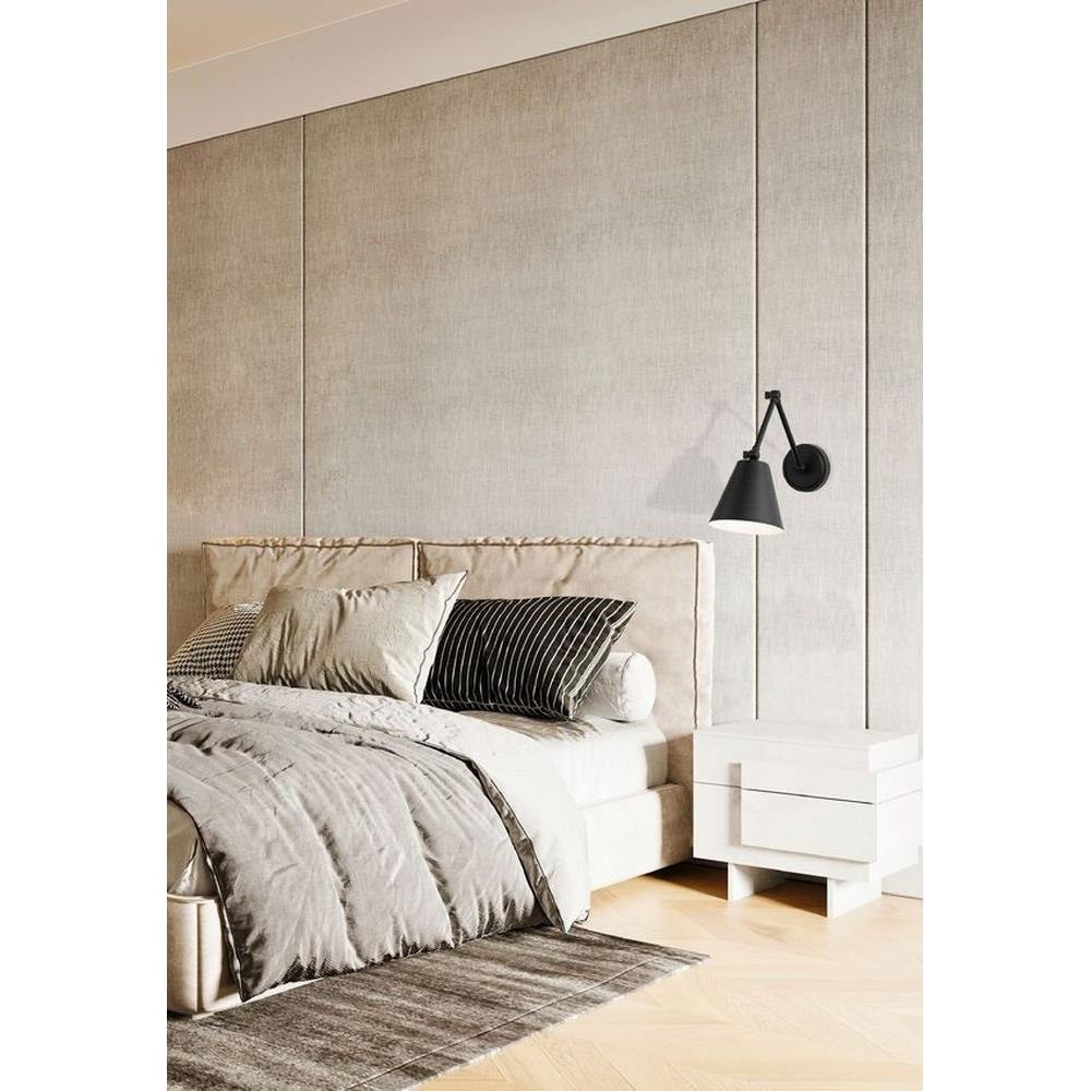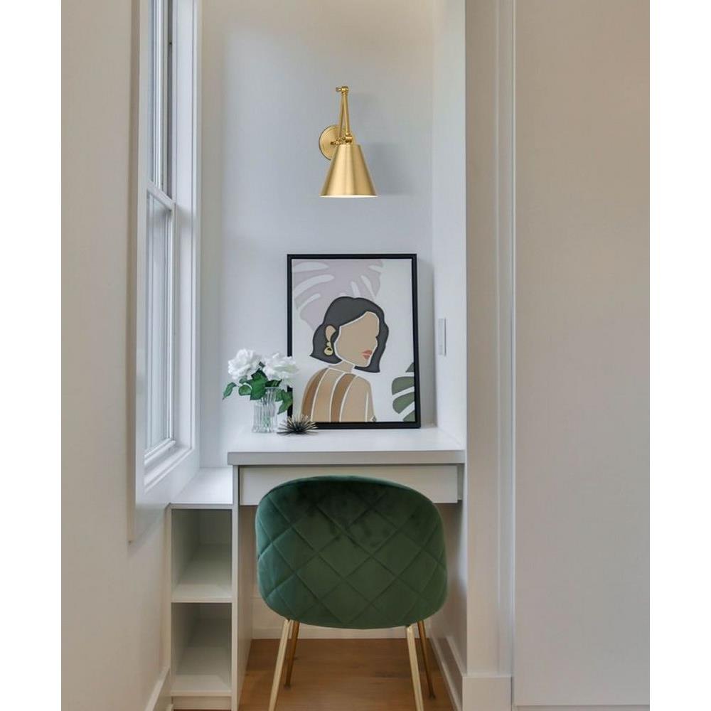 A cool brushed nickel finish begins a traditional motif with flexibility and versatility in this one-light wall sconce. Steel construction is true to its functional aesthetic, making the most of a wall-mounted sconce offering adjustable positioning of a cone shade. This fixture makes an excellent light for reading and task-mastering, as well as mood lighting ideal for a low-key setting.