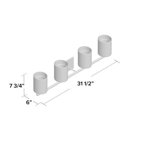 This 4-light vanity light adds a warm glow and lots of vintage-inspired styles to your main bathroom or guest bath. Its clean-lined frame is crafted from metal in a neutral finish, and it hangs from a rectangular wall mount with exposed hardware. This fixture features four clear outer glass shades, while an inner white opal shade creates a layered look. The shades also cast a warm light up or down from four bulbs up to 60W (sold separately) thanks to its reversible mounting design. Another feature we love? This vanity fixture is dimmable to get the lighting you want.