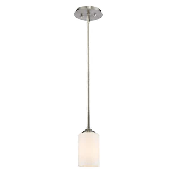 Barr 1-Light Brushed Nickel Shaded Mini-Pendant with Matte Opal Glass
