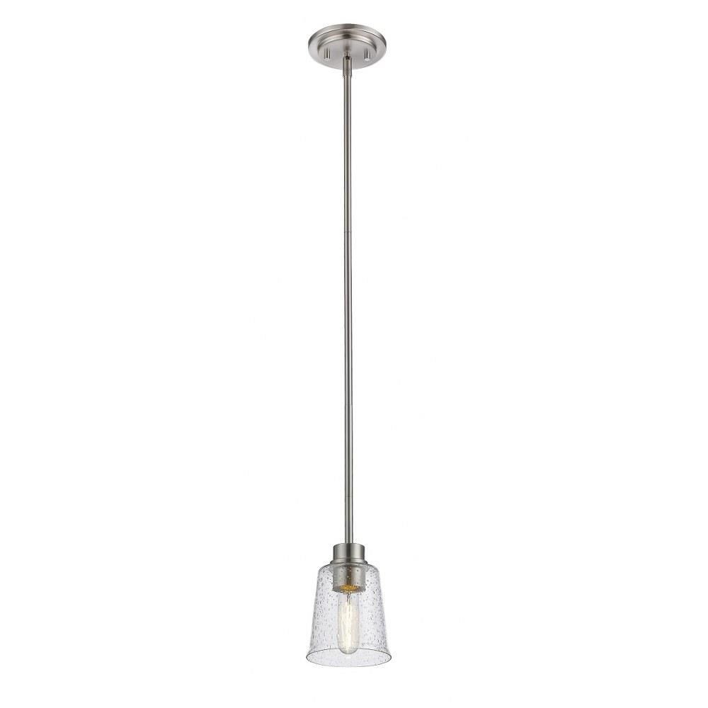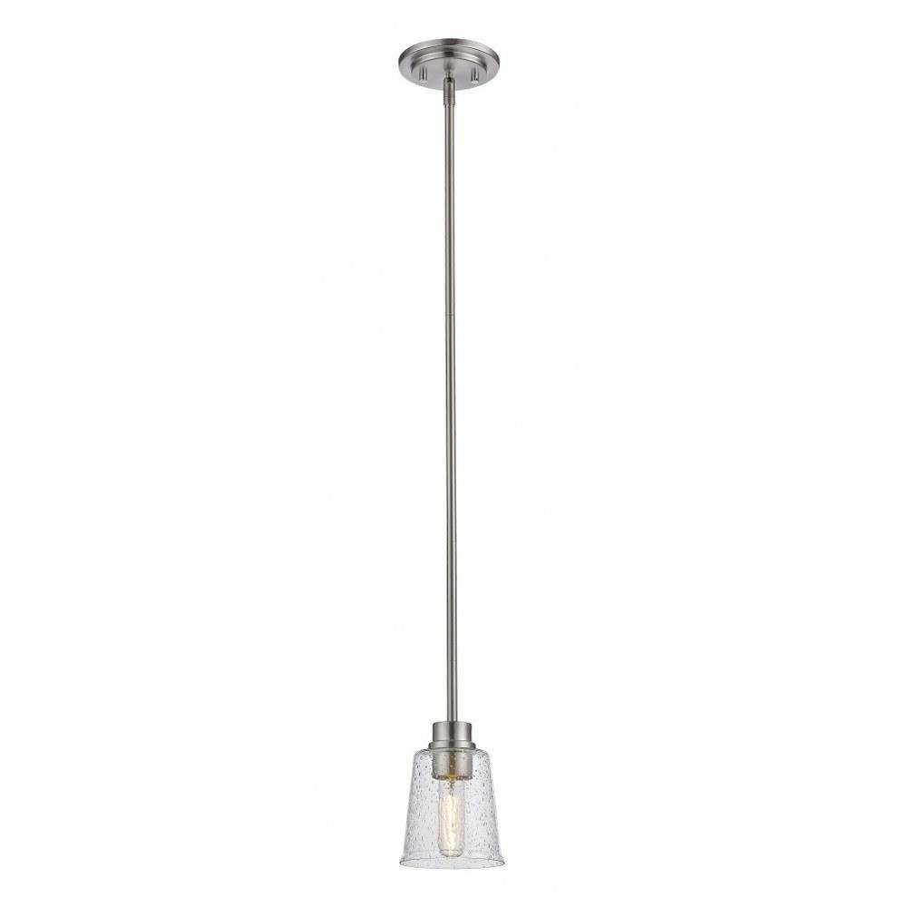 A stylized space counts on chic, design-forward accents, and this brushed nickel steel pendant light offers a fresh dose of beauty. With a romantic clear seedy glass shade and a steel frame, its extended drop adds both drama and energy to a contemporary or transitional living area.