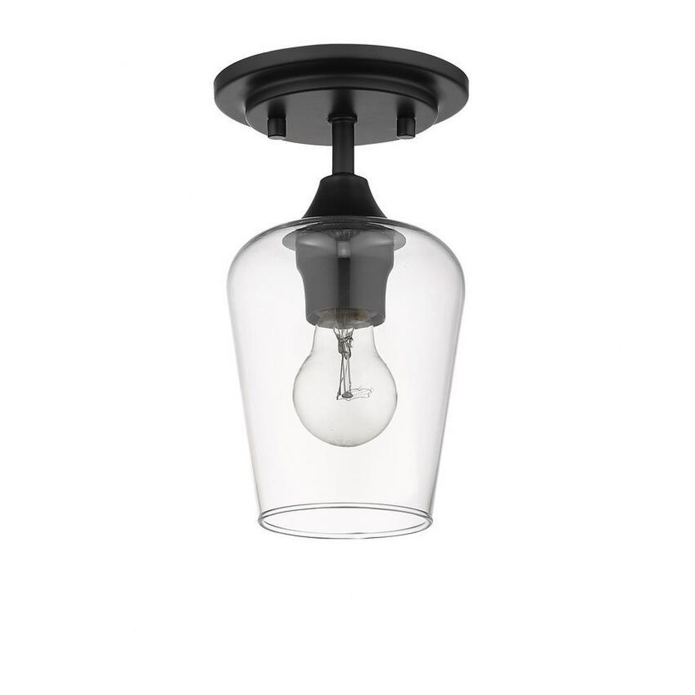 Upscale sophistication with a Mid Century Modern vibe tells the story of this elegant one-light wall flush mount ceiling light. A blend of delightful materials offers a stunning large glass shade with bold Matte Black finish metal, delivering a prominent aesthetic and targeted lighting in a nook or reading space.
