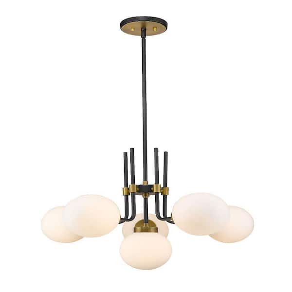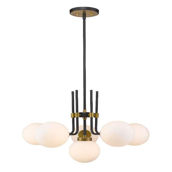 Parsons 6-Light Matte Black Plus Olde Brass Chandelier with Glass Shade