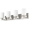 Let your bathroom or hallway bask in soft, warm light. This contemporary four-light wall sconce has a sophisticated, streamlined look, and extends from a long mirrored plate for extra gleam. From the sconce's cylindrical white etched glass shades to its chrome finish, this fixture stylishly upgrades your space.