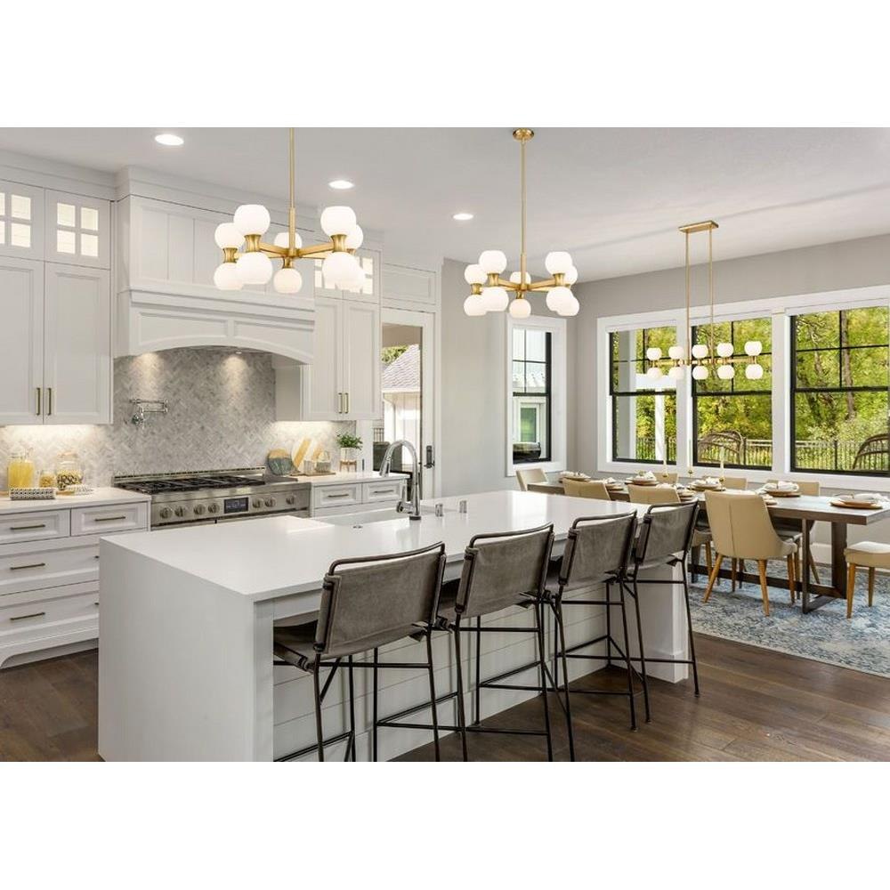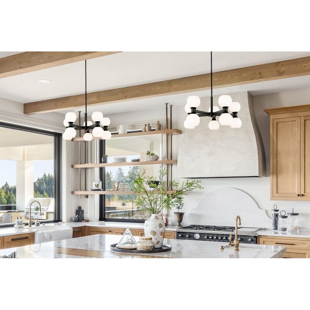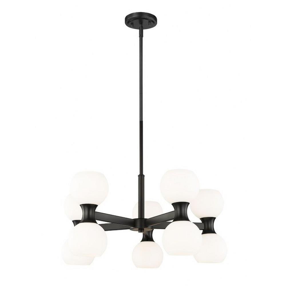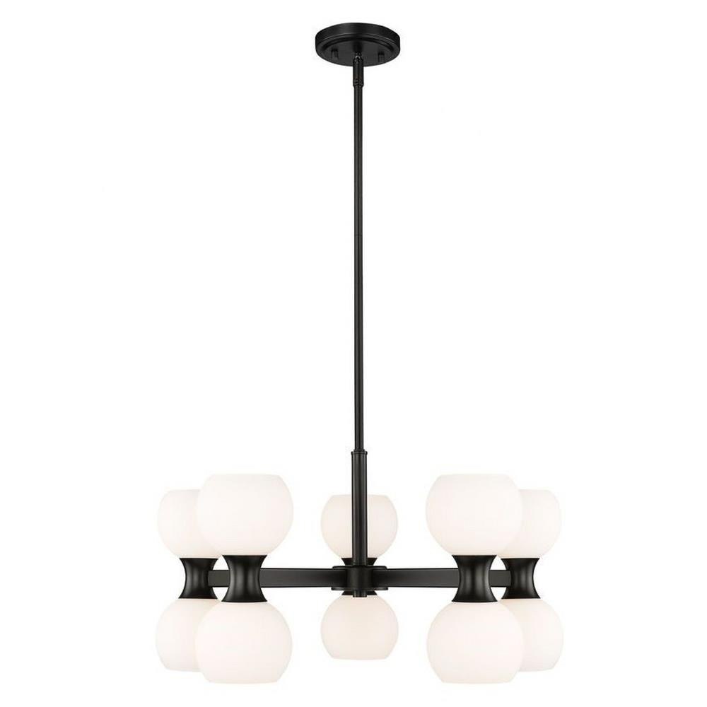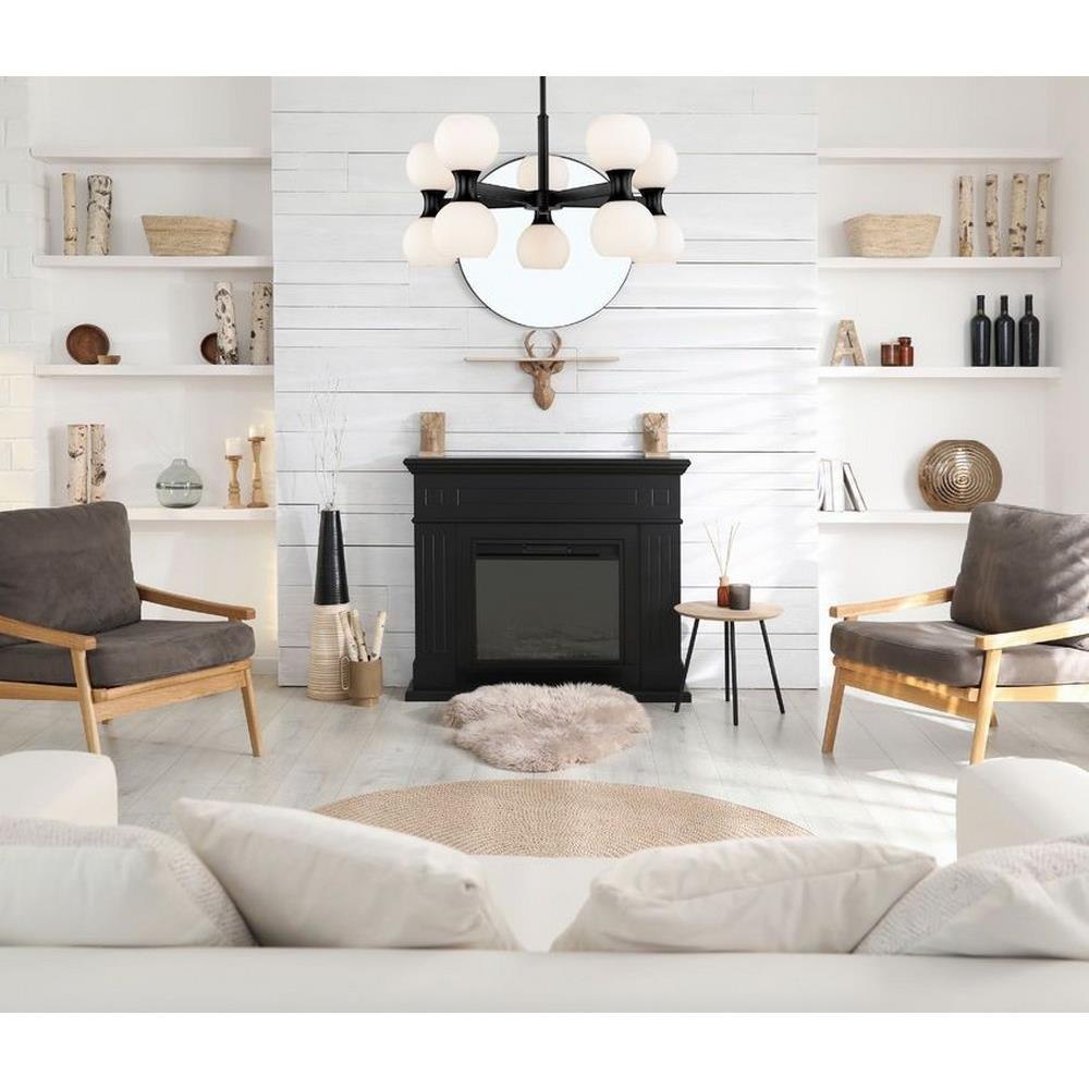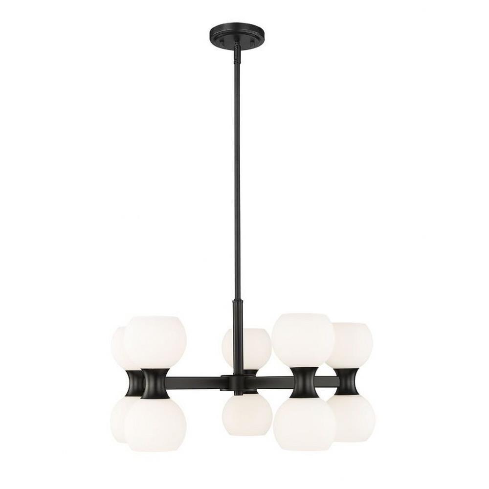 Introduce a focal point to a custom space in the form of a light fixture with pizzazz. From the Artemis collection comes a 10-light chandelier that repackages the storied Mid-Century Modern motif into a statement-making source of lighting in a dining room, living space, or entryway. Embrace a stylish matte black finish linear frame supporting artful opal glass globe shades and deliver a focal point perfect for an expressive setting.