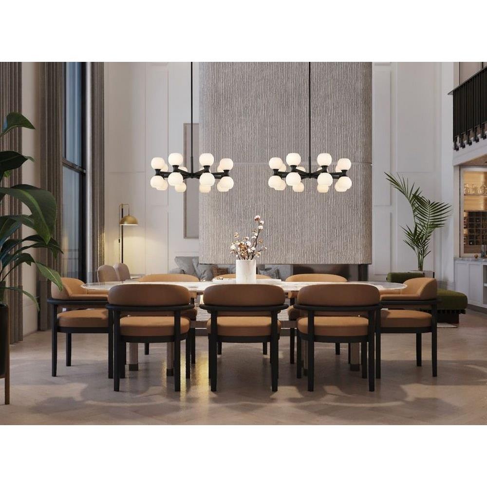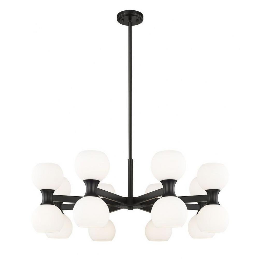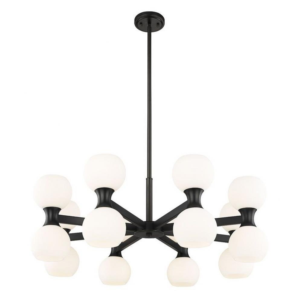 Give a nod to the charming Mid-Century Modern aesthetic with a hint of Art Deco thrown in. This 16-light chandelier from the Artemis collection delivers both uplighting and downlighting through matte opal glass open globes nestling in a frame made of matte black finish steel. A round silhouette ratchets up the festive look of a fixture with personality and plenty of ambient lighting.