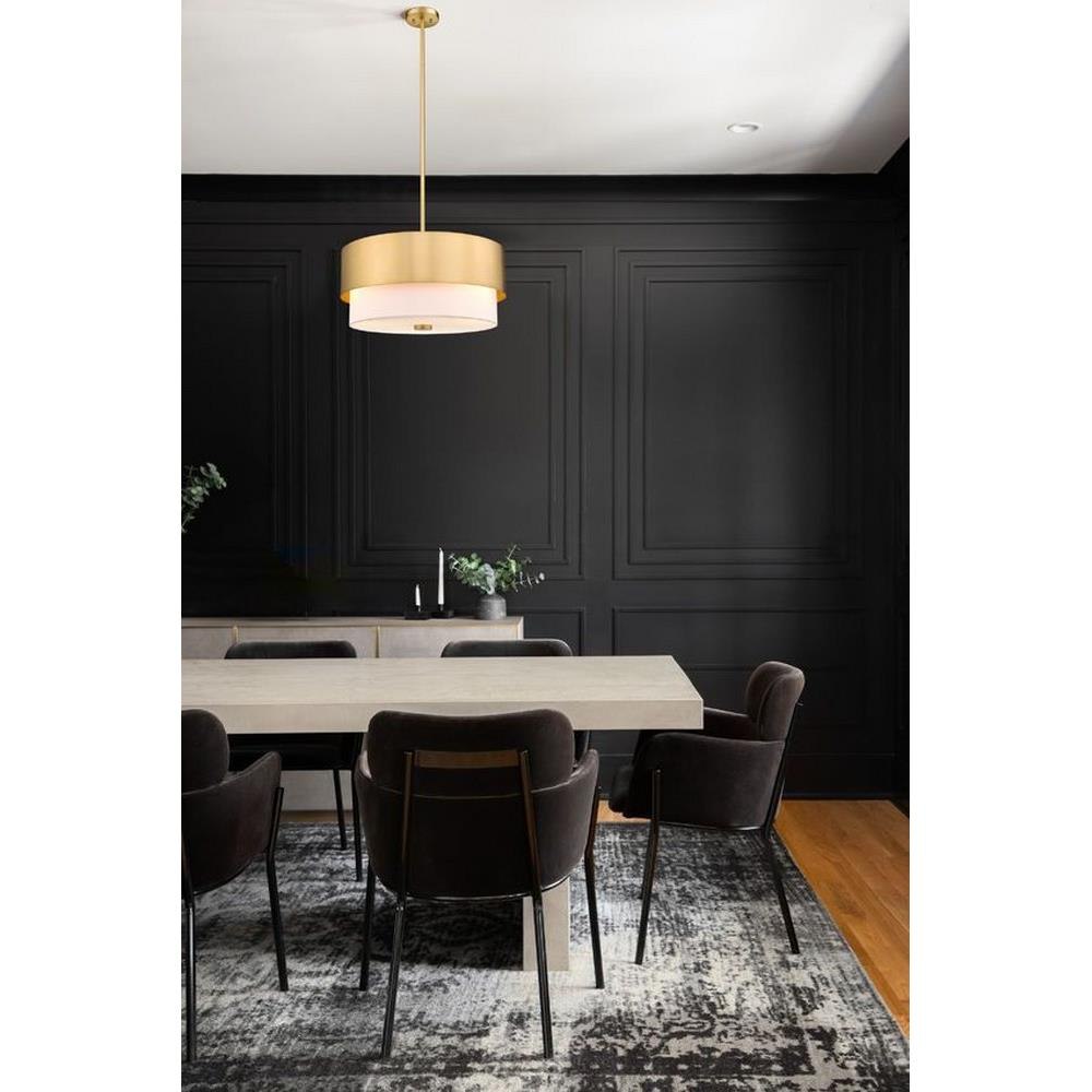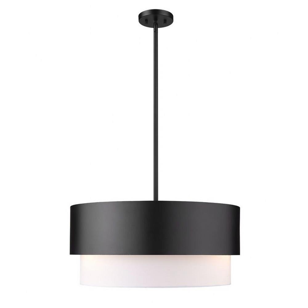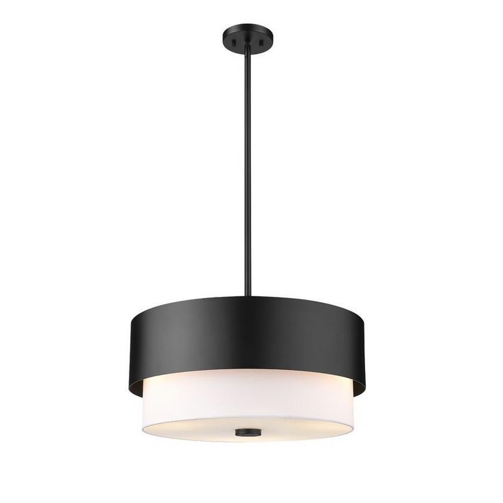 Create a focal point in a modern or transitional space with a three-light pendant from the Counterpoint collection and showcase the marriage of Art Deco with Mid-Century Modern style motifs. Simplicity reflects just the right level of sophistication to display versatility in a kitchen, dining space, or foyer, and adds a crisp finish contrast. This pendant’s matte black finish steel frame and white fabric shade offer the optically pleasing round silhouette trending in today’s balanced interior elements, shaping a fixture that becomes a superb source of ambient lighting.