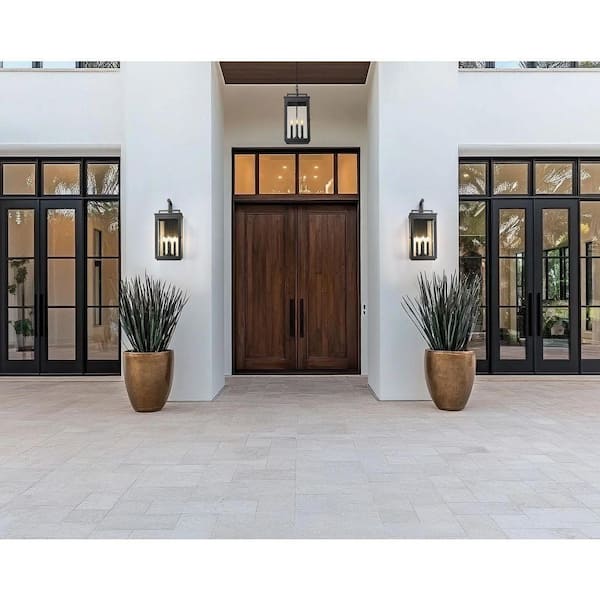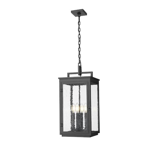 Hartwell 22.75 in. 4-Light Sand Black Dimmable Outdoor Pendant Light with Clear seedy Glass and No Bulb Included