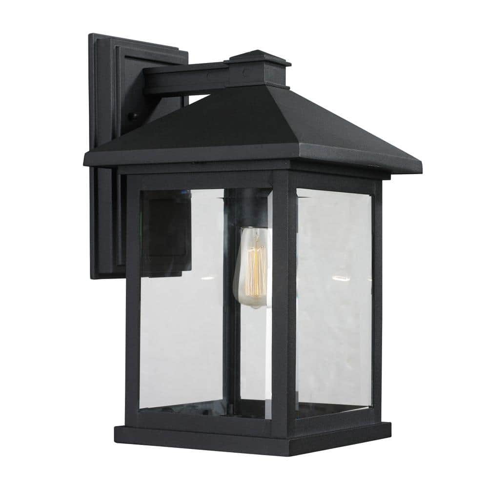 This outdoor wall sconce will update the exterior of your home with its eye-catching design. Featuring a black finish and clear beveled shade(s), this fixture will accommodate a variety of outdoor of dicor styles. With its easy installation and low upkeep requirements, this outdoor wall sconce will not disappoint.