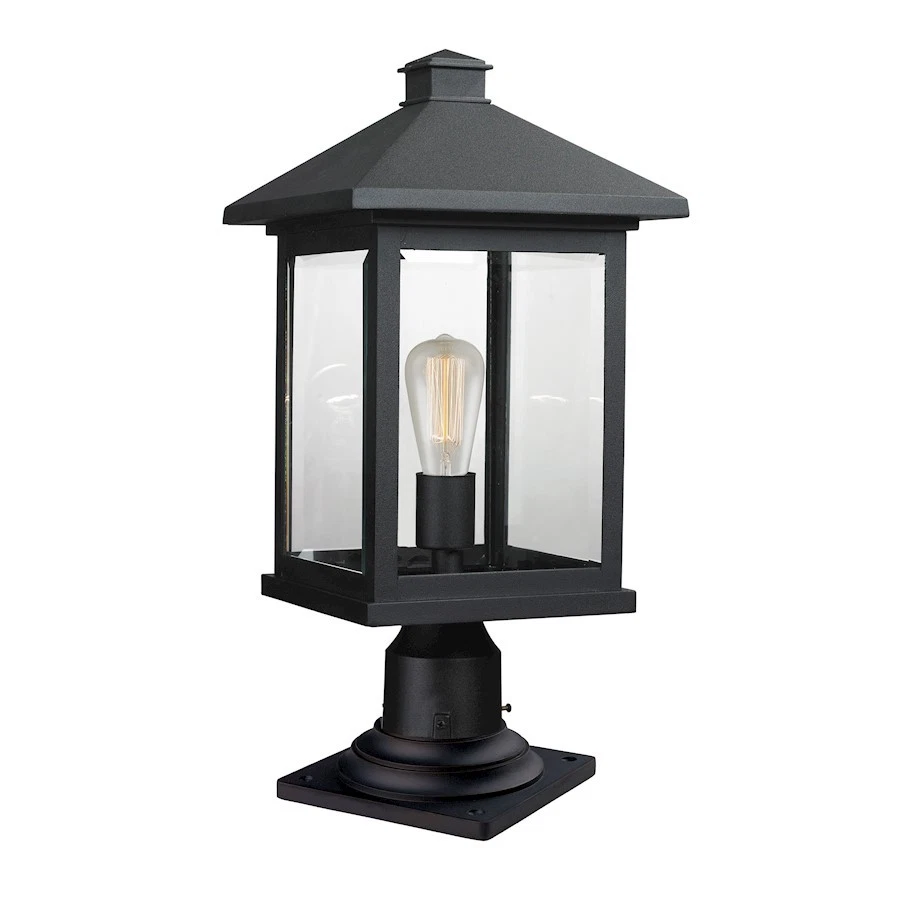 Z-Lite Portland 1 Lt Outdr Pier Mnt, 9.5x20.25, Blk, Clr Bev - 531PHBR-533PM- BK