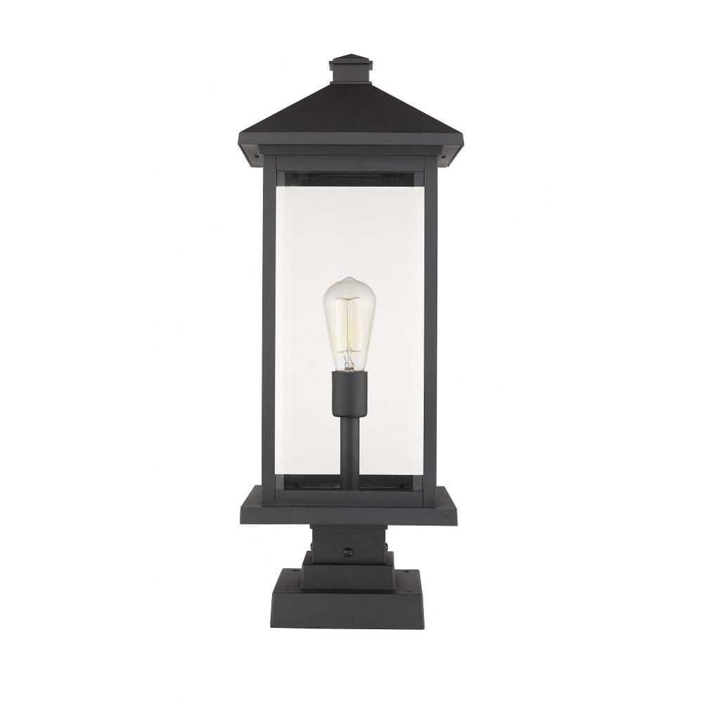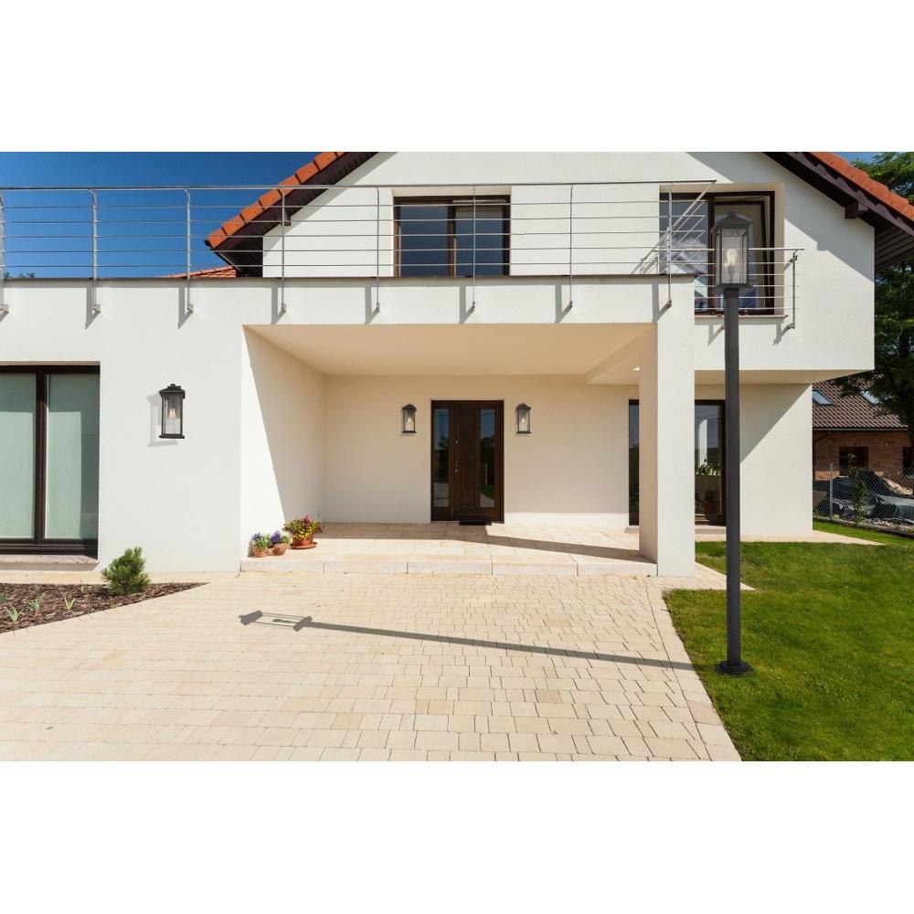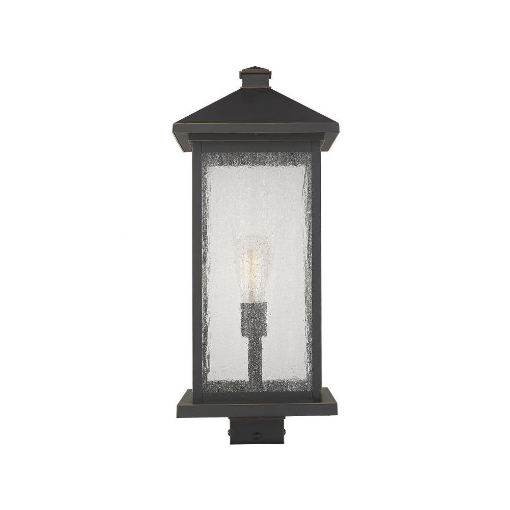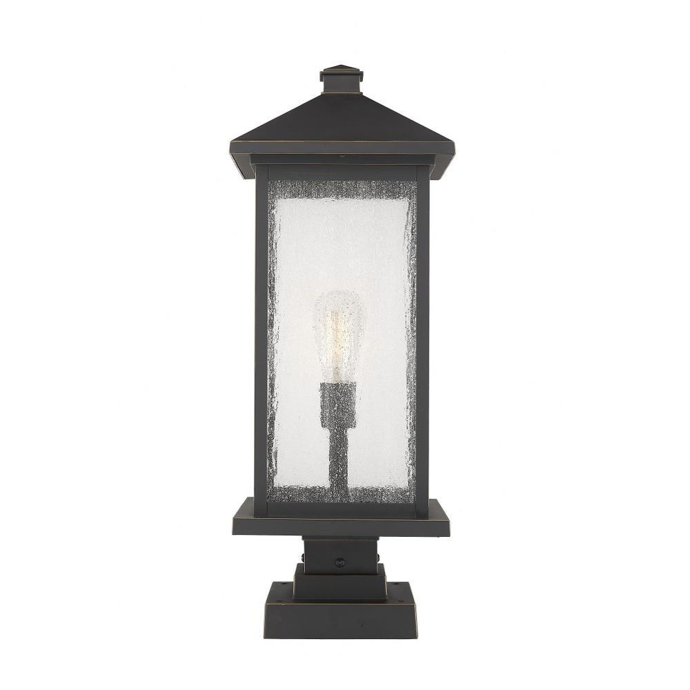 The elongated post from this one-light outdoor lantern emits a sophisticated aura. Sleek and stylish, the clean base boasts a rich outdoor rubbed bronze finish.