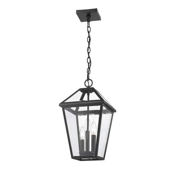 3-Light Black Outdoor Pendant Light with Clear Beveled Glass Shade