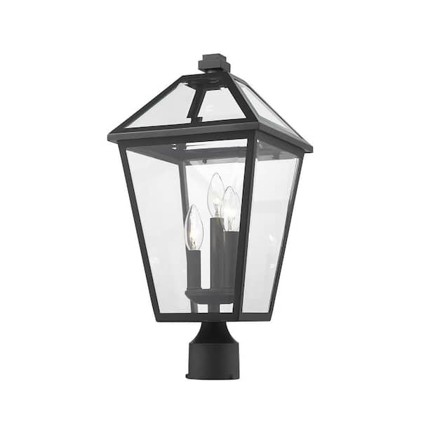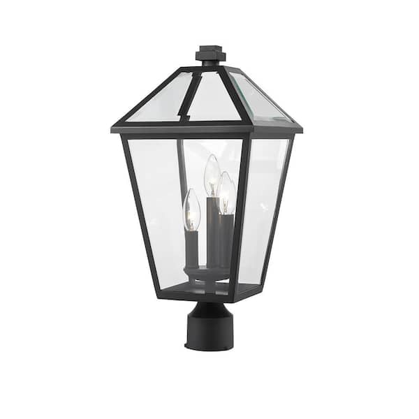 Talbot 3-Light Black 20 in. Steel Hardwired Outdoor Weather Resistant Post Light with Round Fitter with No Bulb Included