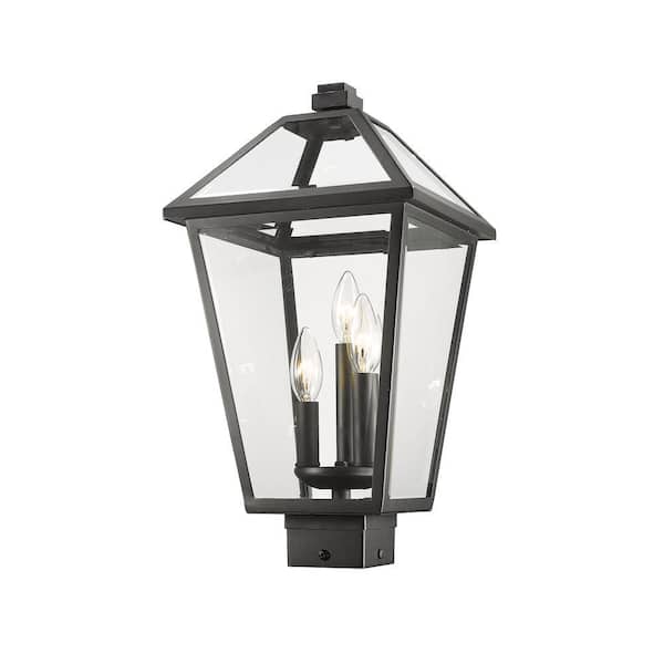 Talbot 3-Light Black 18.5 in. Steel Hardwired Outdoor Weather Resistant Post Light Square Fitter with No Bulb Included