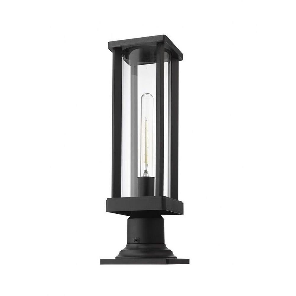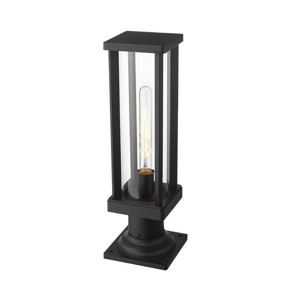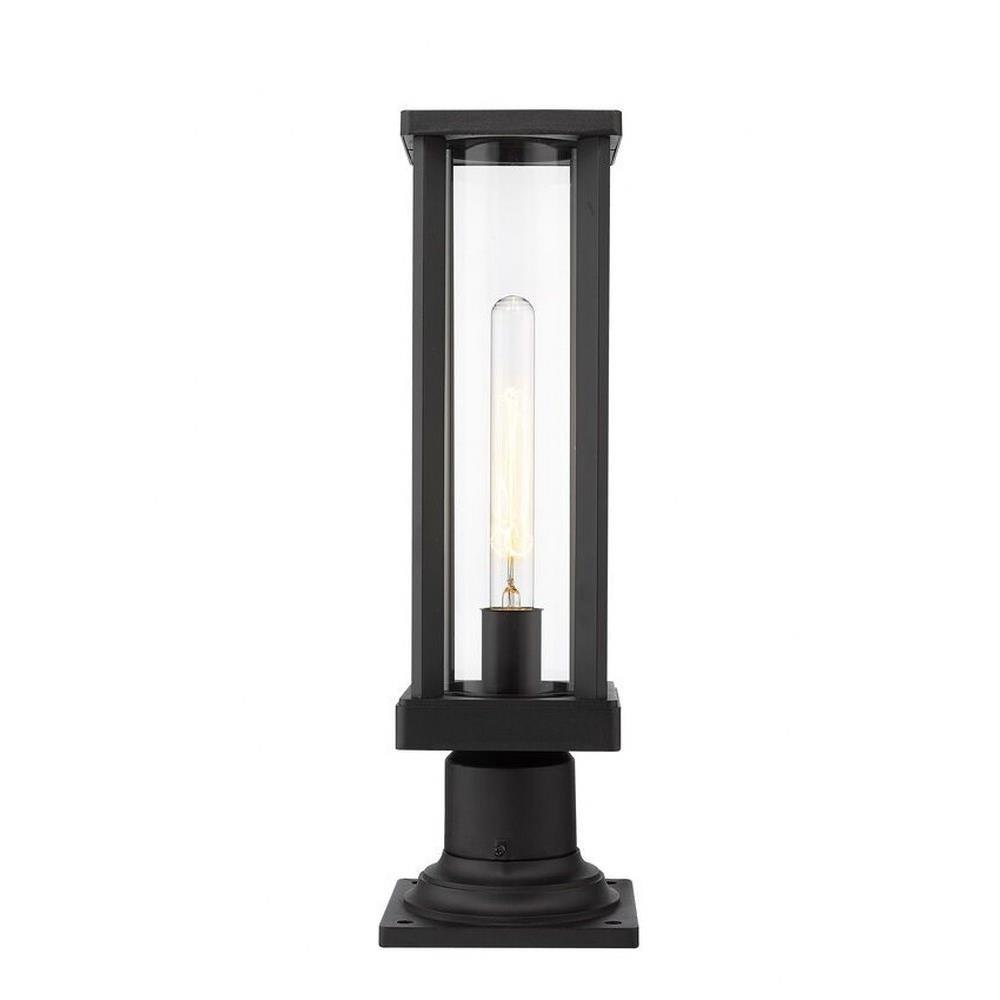 From the Glenwood lighting collection comes this outdoor pier mounted fixture, perfectly suited for placing on top of columns leading down the driveway or along a patio railing. Encased in a sleek modern aluminum frame, this lighting piece features a cylindrical clear glass lantern to allow the bulb to brighten the dimmest paths. With a deep black finish, this pier mounted lantern fixture works pleasantly with any architectural styles and elements.