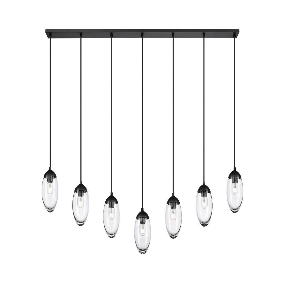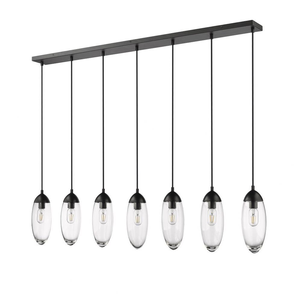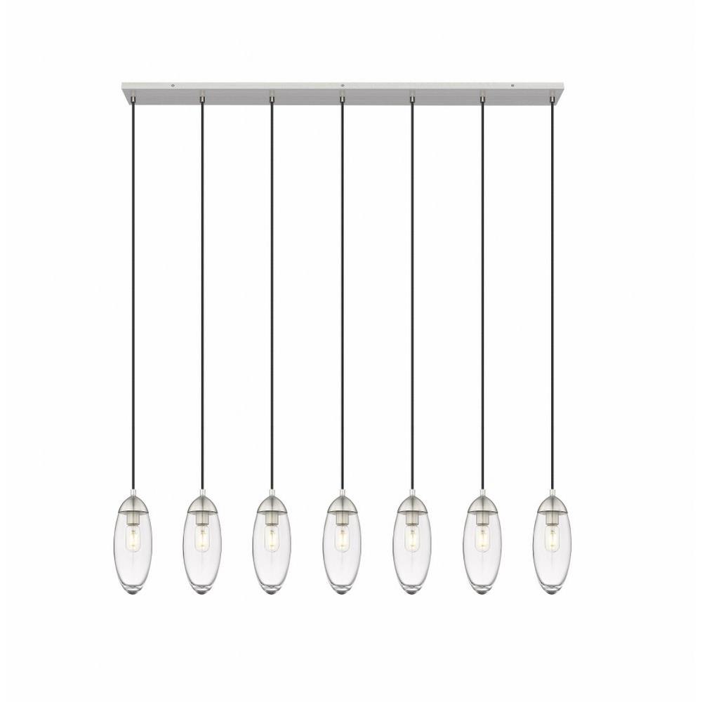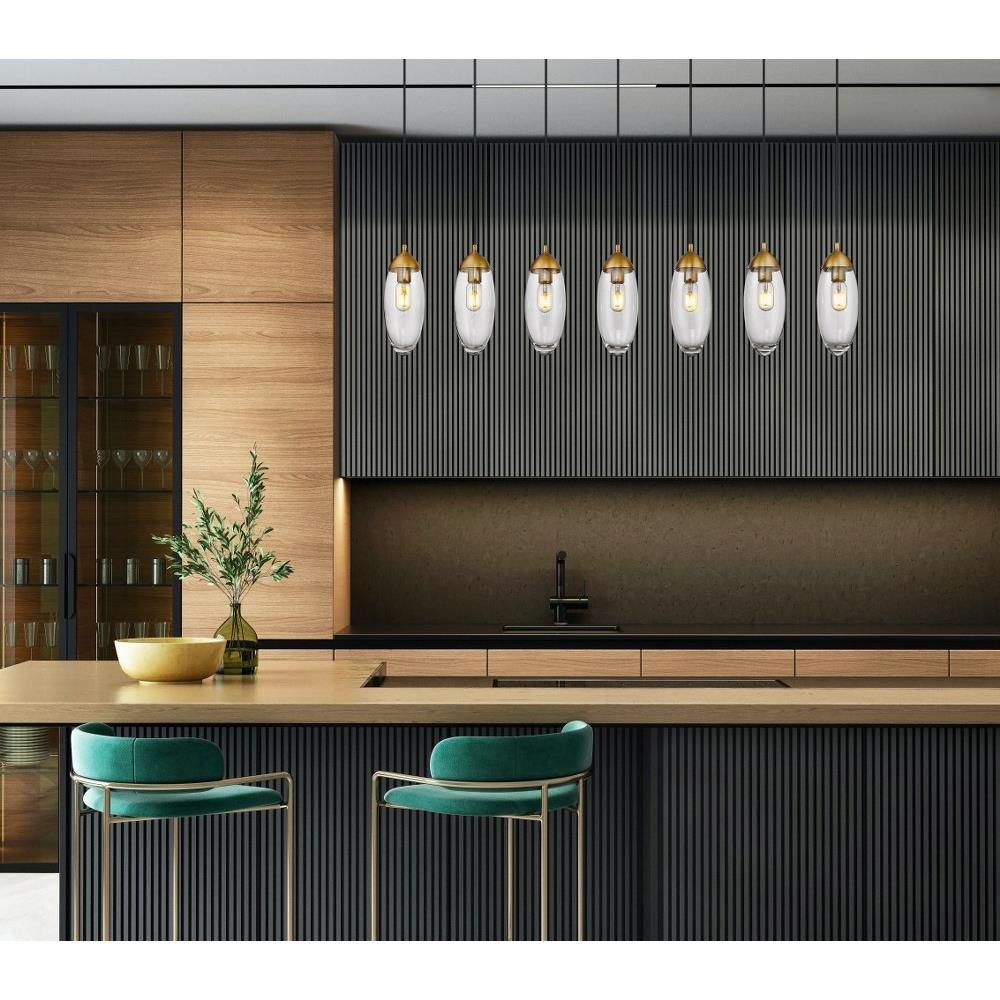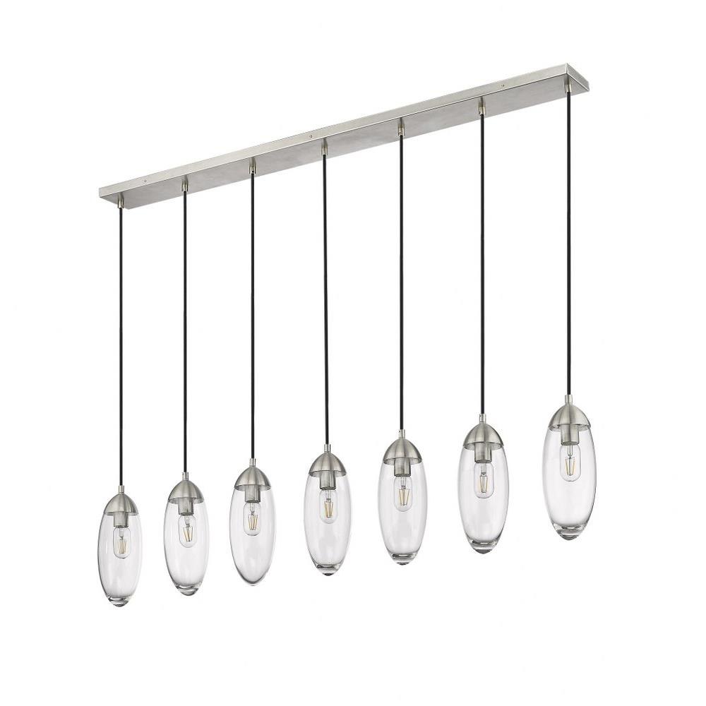 Customize a modern interior design scheme lighting suited to sleek elegance. A careful arrangement of delicate glass teardrop shades forms a minimalist silhouette with maximal impact as this seven-light chandelier becomes an expression of sophistication in a contemporary setting. Placed over an island, dining ensemble, or living area, this fixture with a brushed nickel finish metal canopy offers a sought-after mix of organic and gallery-inspired flavor.