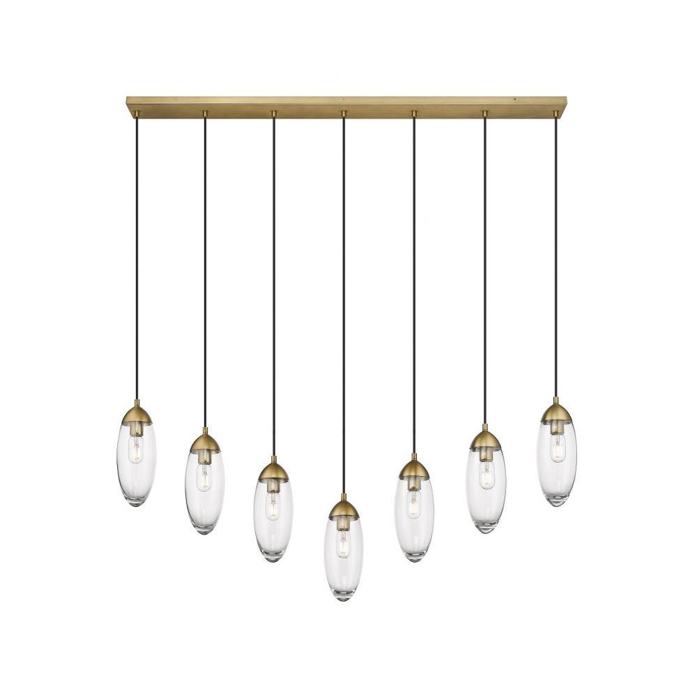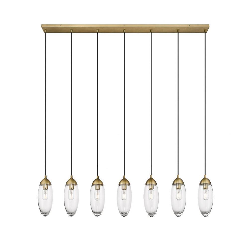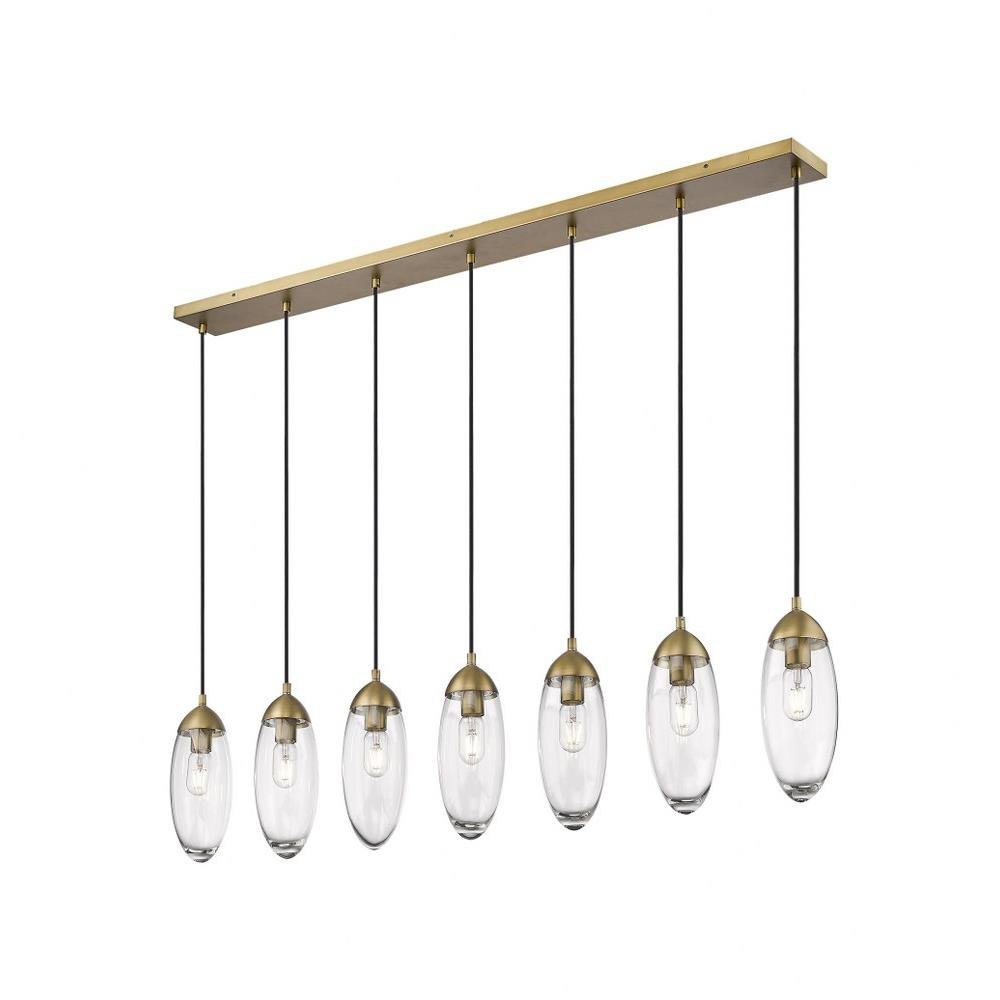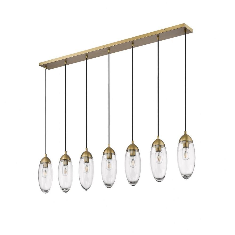 Customize a modern interior design scheme lighting suited to sleek elegance. A careful arrangement of delicate glass teardrop shades forms a minimalist silhouette with maximal impact as this seven-light chandelier becomes an expression of sophistication in a contemporary setting. Placed over an island, dining ensemble, or living area, this fixture with a brushed nickel finish metal canopy offers a sought-after mix of organic and gallery-inspired flavor.