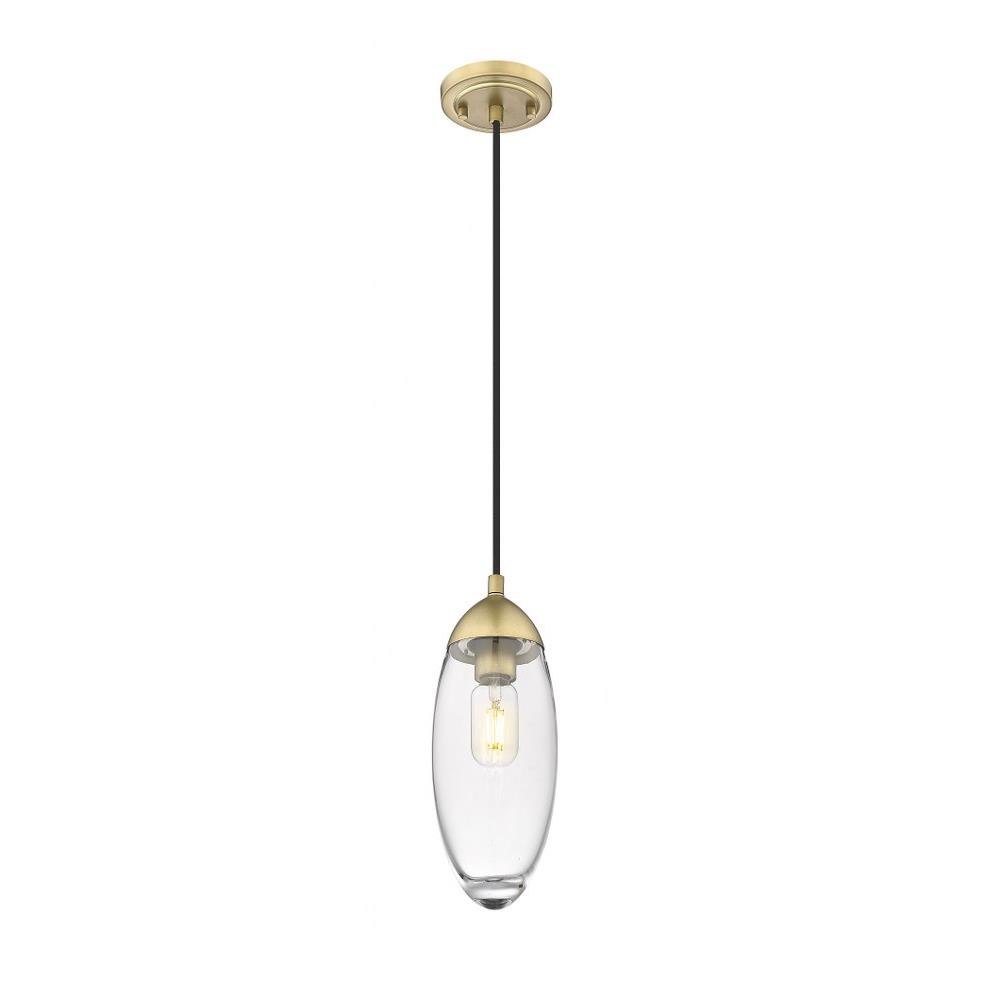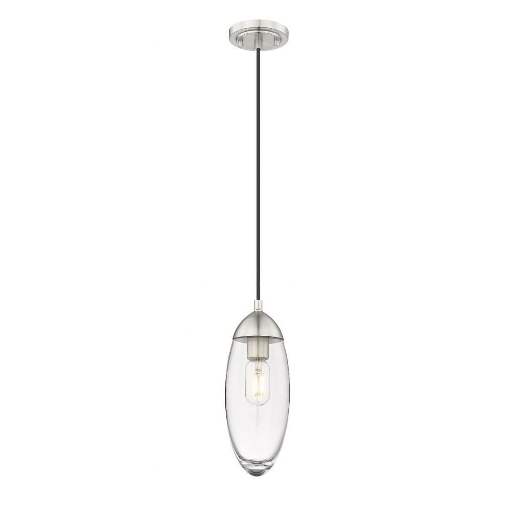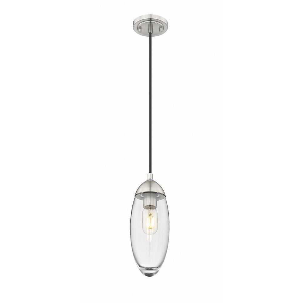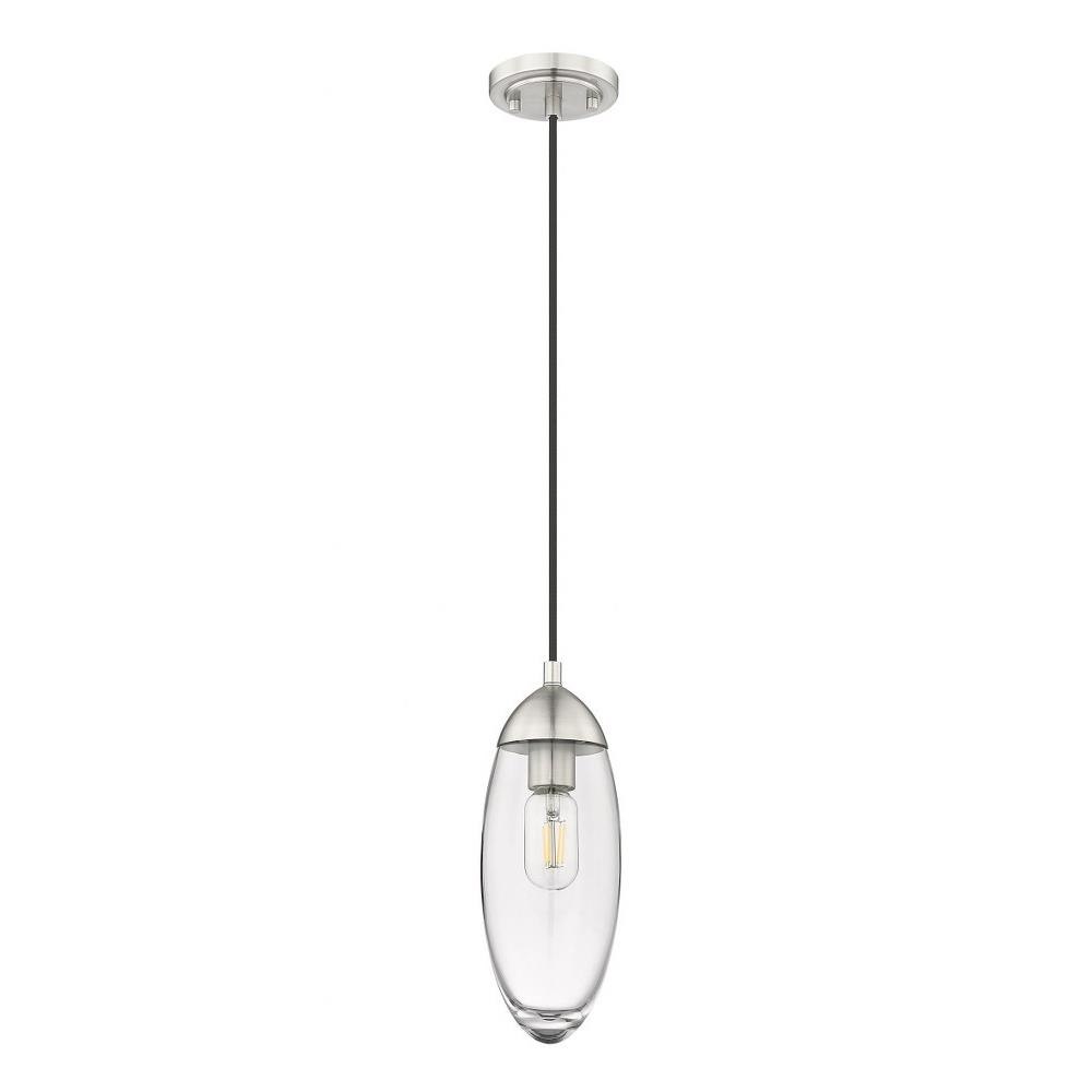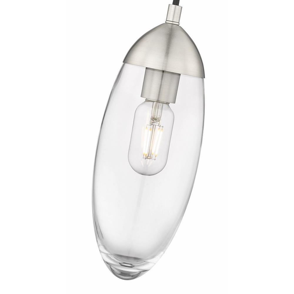 From the Arden collection comes a work of art masquerading as lighting décor and adding an ultra-chic glam look with linear principles. This one-light pendant is fashioned for bridging old and new, featuring a linear down rod and canopy in brushed nickel iron. A romantic elliptical glass shade completes its delightful silhouette and provides versatility for complementing any décor scheme.