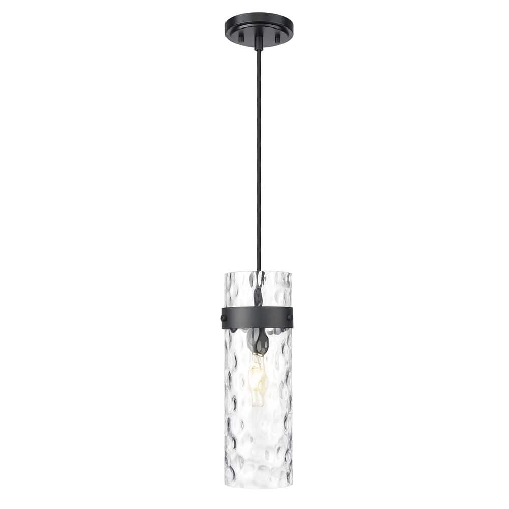 Z-Lite Fontaine 1 -Light Matte Black Transitional Textured glass Cylinder Hanging Pendant Light one_size | 7002P5-MB